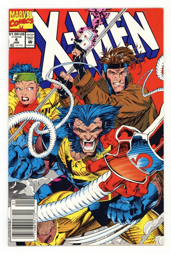 Tags: X-Men$9.60Newsstand Edition. Cover pencils by Jim Lee, inks by Scott Williams. The Resurrection and the Flesh, script by Jim Lee (Plot) and John Byrne, pencils by Jim Lee, inks by Scott Williams. First appearance of Omega Red! The Hand brings Omega Red (formerly Arkady) back to life; The X-Men play basketball, mutant style; Moira agonizes over her part in the Magneto fiasco and leaves; Gambit and Rogue are on the way to a chaperoned date when Omega Red and the Hand interfere. Cover price $1.00.