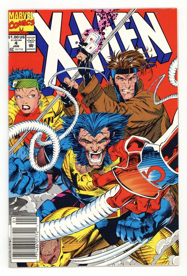Tags: X-Men$10.50Newsstand Edition. Cover pencils by Jim Lee, inks by Scott Williams. The Resurrection and the Flesh, script by Jim Lee (Plot) and John Byrne, pencils by Jim Lee, inks by Scott Williams. First appearance of Omega Red! The Hand brings Omega Red (formerly Arkady) back to life; The X-Men play basketball, mutant style; Moira agonizes over her part in the Magneto fiasco and leaves; Gambit and Rogue are on the way to a chaperoned date when Omega Red and the Hand interfere. Cover price $1.00.