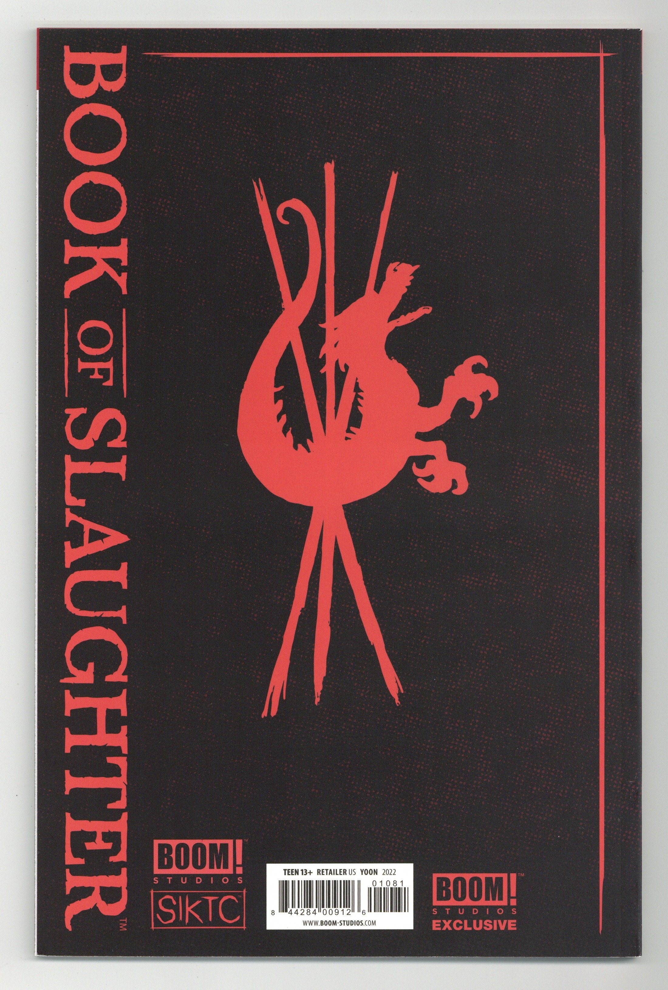 Published by Boom Studios.$13.00Written by James Tynion IV. Art by Werther Dell'Edera. Cover by Jung-Geun Yoon. The future of the Slaughterverse is laid bare by Something is Killing the Children and House of Slaughter creators James Tynion IV and Werther Dell'Edera in the very first SIKTC one-shot special! From the sidelines to the spotlight, Book of Slaughter follows the white mask Maxine Slaughter... but will her loyalties remain where they are, or will she show her true colors? In addition to being a precursor to the upcoming chapters of both series, this special issue features a sizable guidebook that delves into the deep lore of the Order of St. George! 64 pages, full color. Rated Teen Cover price $34.99.
