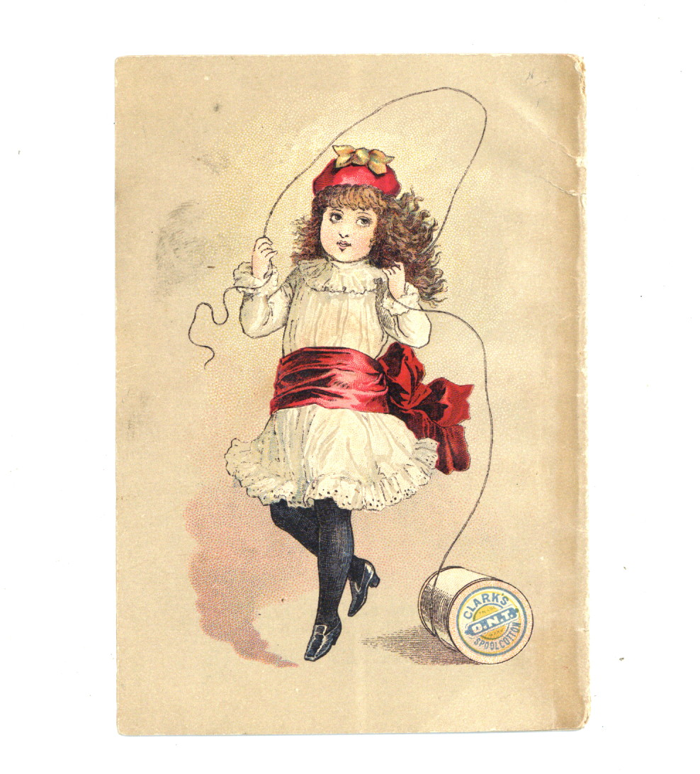 Advertising booklet for Clark's O.N.T. Spool Cotton, estimated 1890s. 12 pages, 3.25" x 4.75", color cover with sepia tone interior.