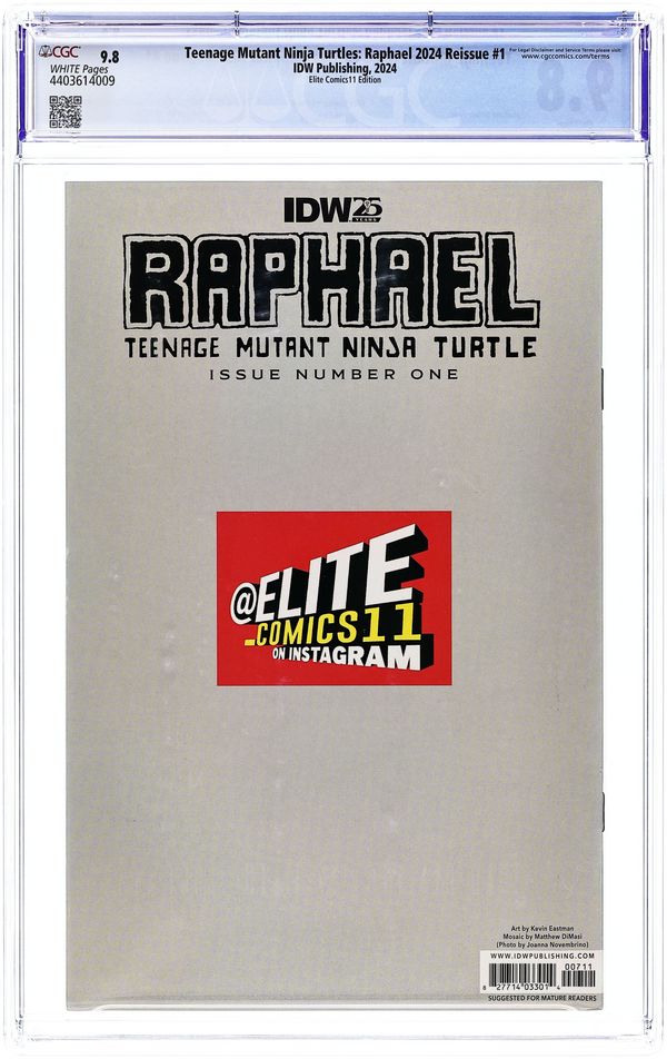 Published 2024 by IDW Publishing.Teenage Mutant Ninja Turtles Micro Series Raphael (2024 IDW) Anniversary Reissue 1ELITECOMICS CGC 9.8