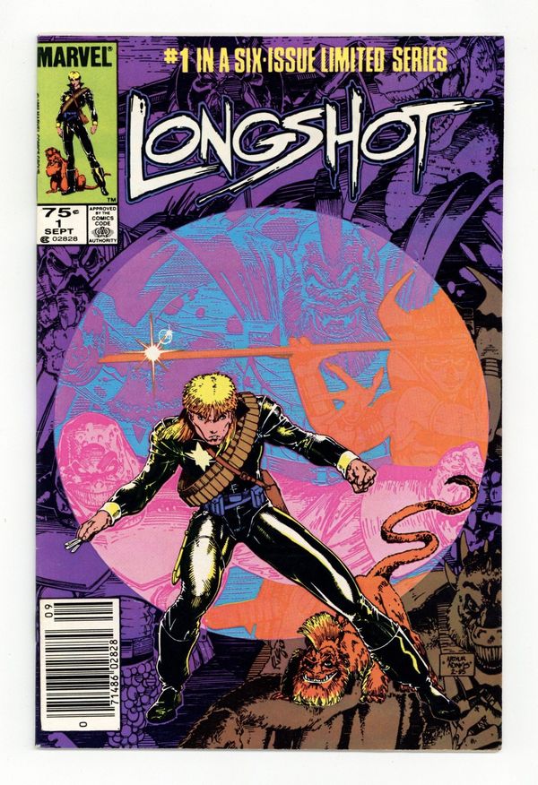 Newsstand Edition. 1st Art Adams pro work. Arriving on Earth unsure of his own identity, Longshot tries to rescue a kidnapped baby in "A Man Without a Past." Script by Ann Nocenti. Pencils by Arthur Adams (his first pro work). Inks by Whilce Portacio & Anderson. Cover by Adams. 1st appearance of Longshot and Spiral. Cover price $0.75.