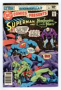 Tags: Superman$48.00Newsstand Edition. Superman and Manhunter from Mars star in "The Key That Unlocked Chaos!" First appearance of Mongul. Written by Len Wein, with art by Jim Starlin, Dick Giordano and Frank McLaughlin. Characters: Superman; Martian Manhunter [J'onn J'onzz, Manhunter from Mars]; Mongul (intro, villain); Steve Lombard; Jimmy Olsen; Lois Lane; The Warzoon (aliens, flashback); The Largas (aliens, flashback); green kryptonite. Plus: "Whatever Happened to Congorilla?" Written by Bob Rozakis, with art by Romeo Tanghal and Frank Chiaramonte. Characters: Congo Bill; Congorilla; Golden Gorilla; Janu; Mose; K'Bani (villain); Fred Cantrell (villain). Cover by Jim Starlin. Cover price $0.50.