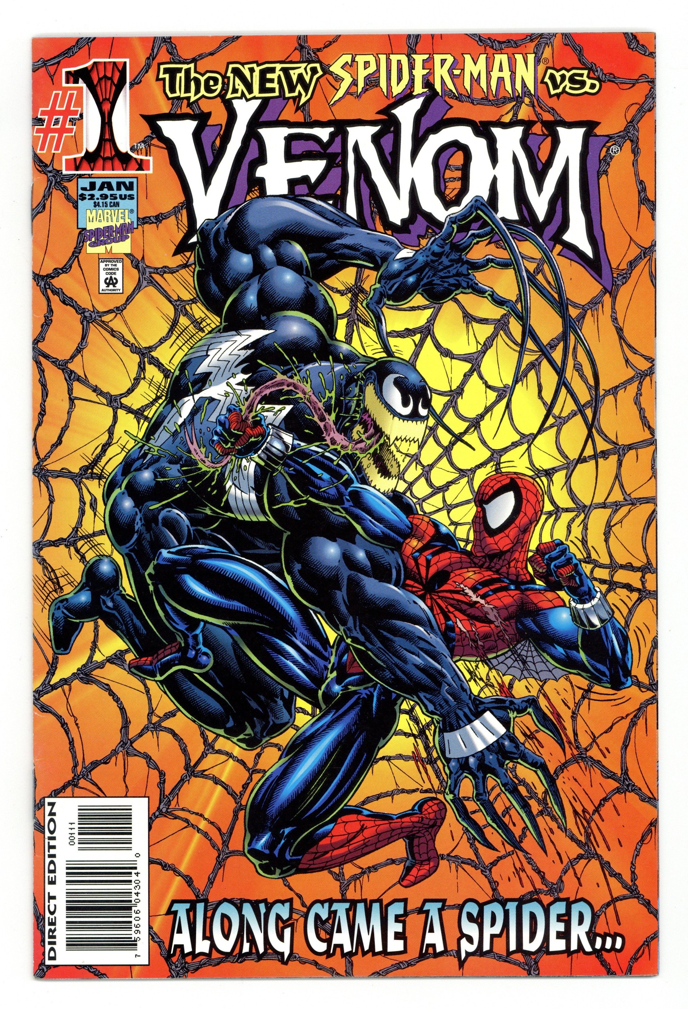 Tags: Marvel Legacy Numbering: Venom (part 37), Spider-Man$19.50Along Came A Spider, script by Larry Hama; Venom busts Ann out of the local precinct and the new Spider-Man shows up to help stop him. Hybrid, Phase One: First Touch, script by Evan Skolnick, pencils by Patrick Zircher, inks by Greg Adams; The 4 alien symbiotes form Hybrid. 52 pgs., full color. $2.95. Cover price $2.95.