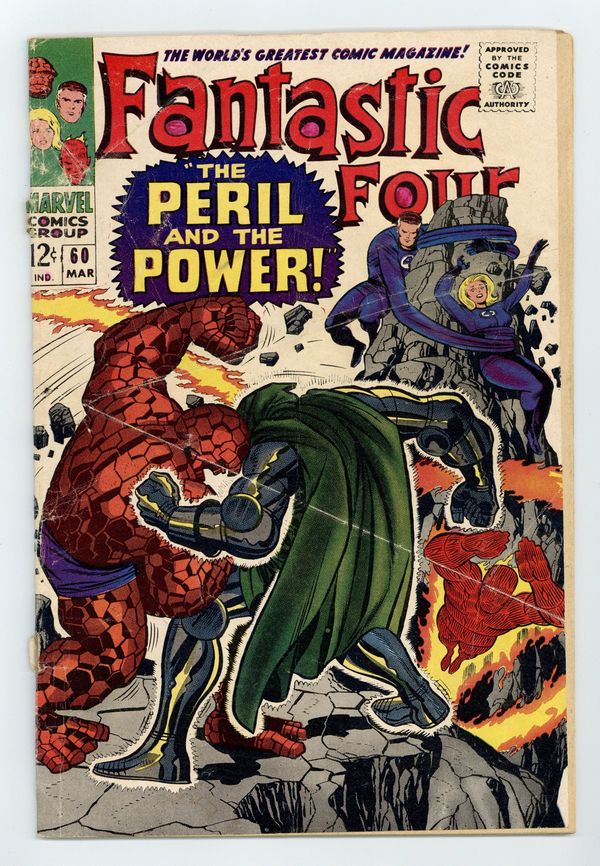 $83.00Cover pencils by Jack Kirby, inks by Joe Sinnott. Doctor Doom steals the Silver Surfer's cosmic powers (part 4 of 4) in The Peril and the Power!, script by Stan Lee and Jack Kirby (co-plot), pencils by Jack Kirby, inks by Joe Sinnott; The FF defeat Dr. Doom. Appearances by the Inhumans, the Watcher, and the Black Panther. 36 pgs. $0.12. Cover price $0.12.