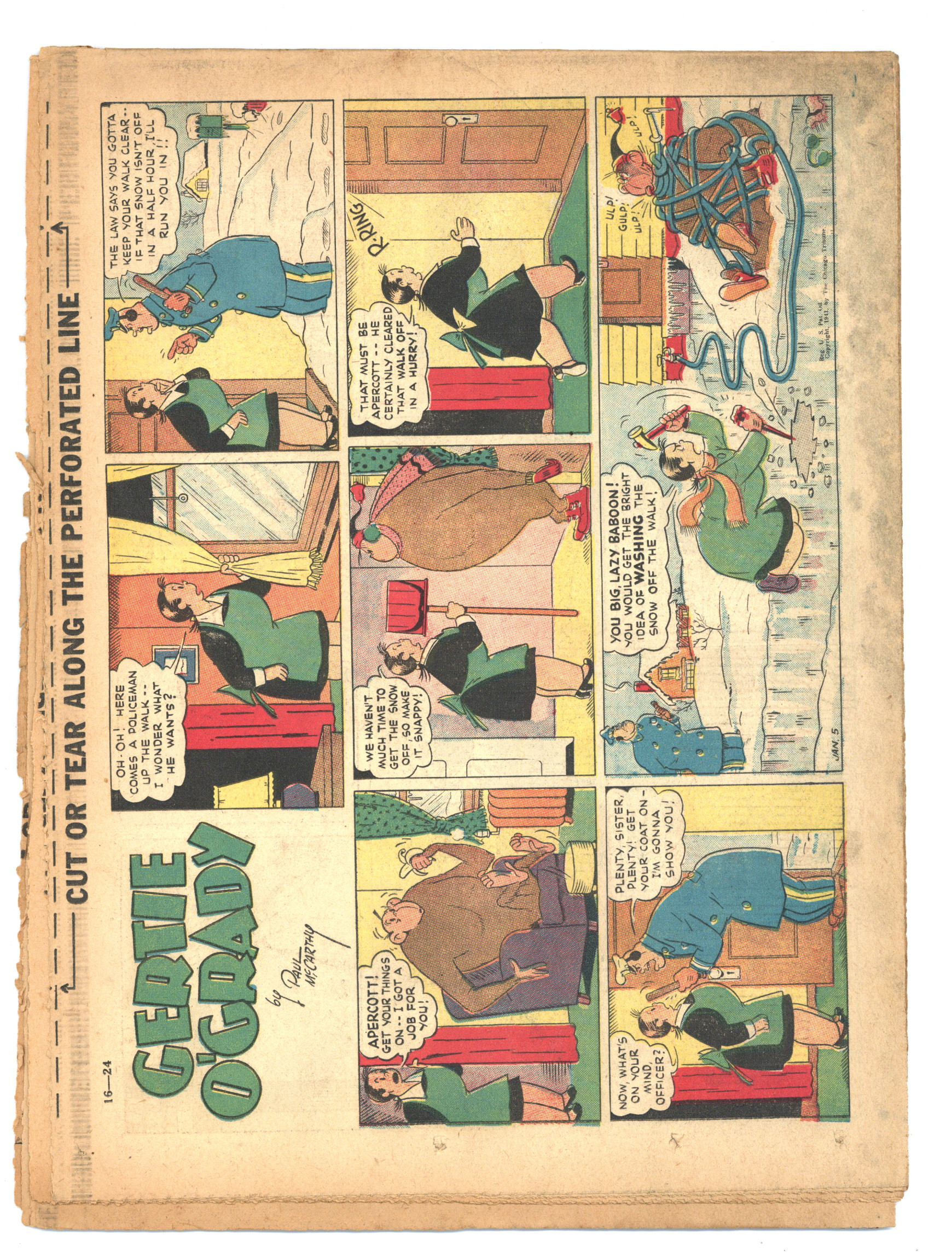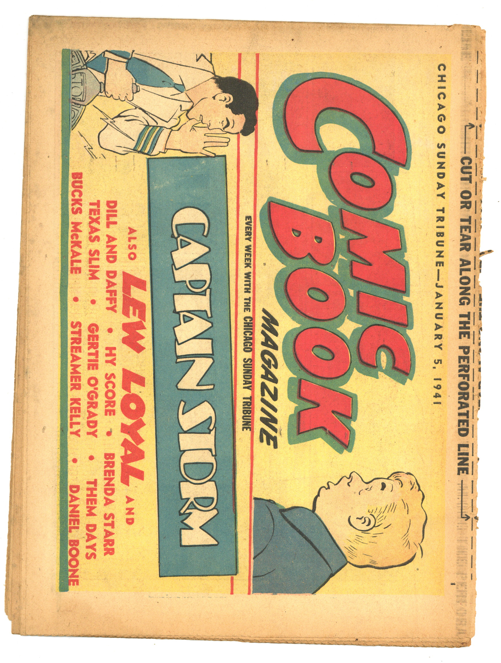 Published Jan 1941 by Chicago Tribune.$40.00Comic Book Magazine (1941) is published by the Chicago Tribune. Enjoy such comic strips as Texas Slim and Dirty Dalton, Lew Loyal, Kit Cabot, Spooky, Fighting with Daniel Boone, and many more. Originally came each Sunday with the Chicago Sunday Tribune. 16 pages, full color, 18.50-in X 13.25-in.