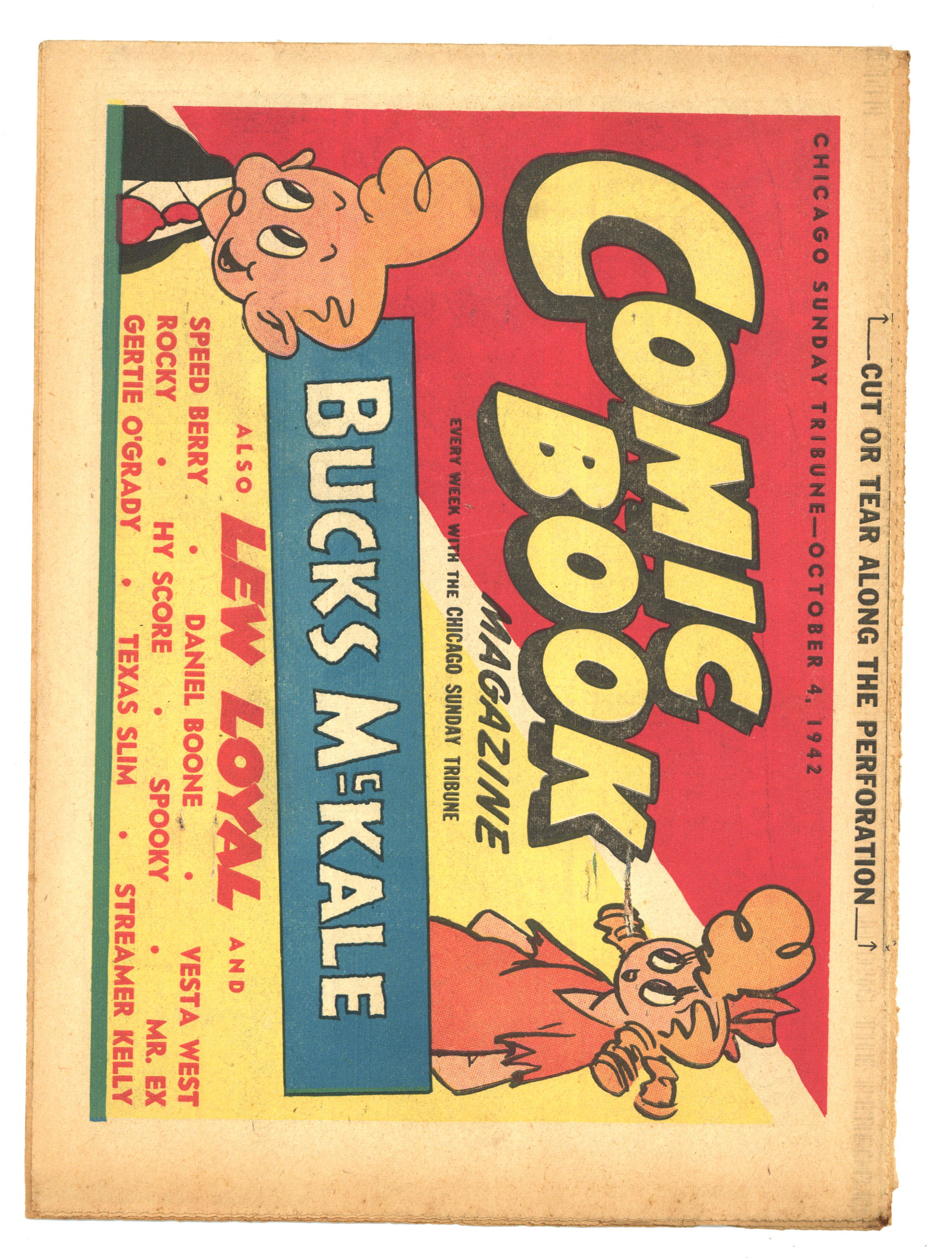 Published Oct 1942 by Chicago Tribune.$40.00October 4, 1942. Comic Book Magazine is published by the Chicago Tribune. Enjoy such comic strips as Texas Slim and Dirty Dalton, Lew Loyal, Kit Cabot, Spooky, Fighting with Daniel Boone, and many more. Originally came each Sunday with the Chicago Sunday Tribune. 16 pages, full color, 18.50-in X 13.25-in.