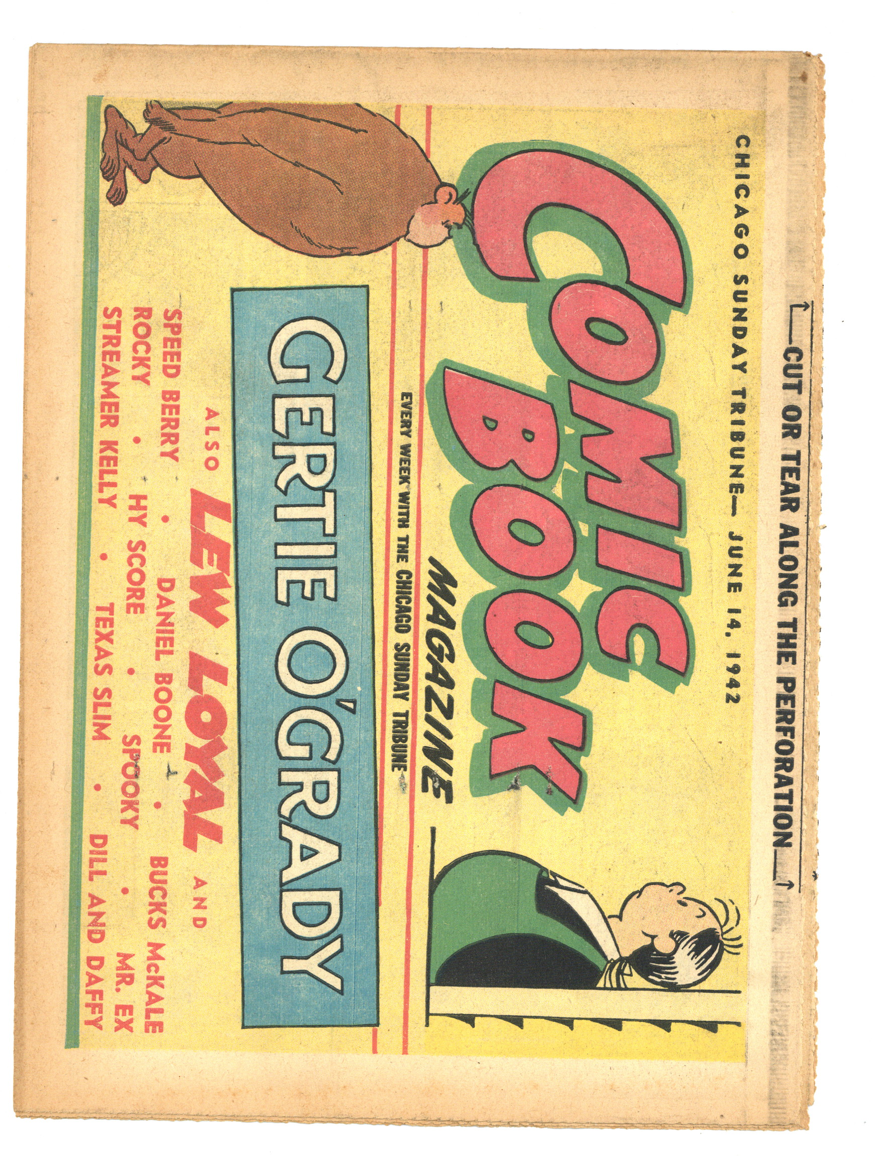 Published Jun 1942 by Chicago Tribune.$40.00June 14, 1942. Comic Book Magazine is published by the Chicago Tribune. Enjoy such comic strips as Texas Slim and Dirty Dalton, Lew Loyal, Kit Cabot, Spooky, Fighting with Daniel Boone, and many more. Originally came each Sunday with the Chicago Sunday Tribune. 16 pages, full color, 18.50-in X 13.25-in.