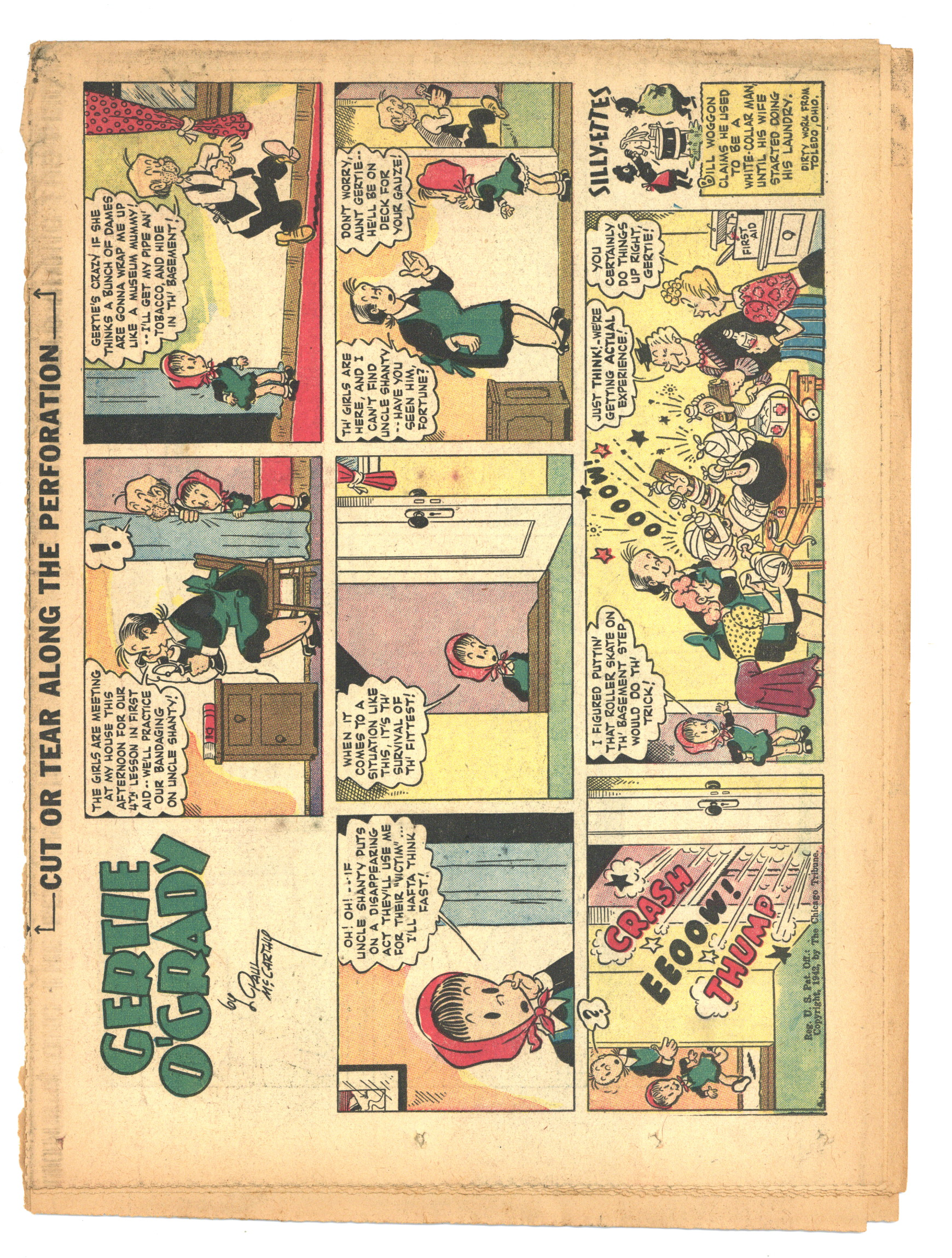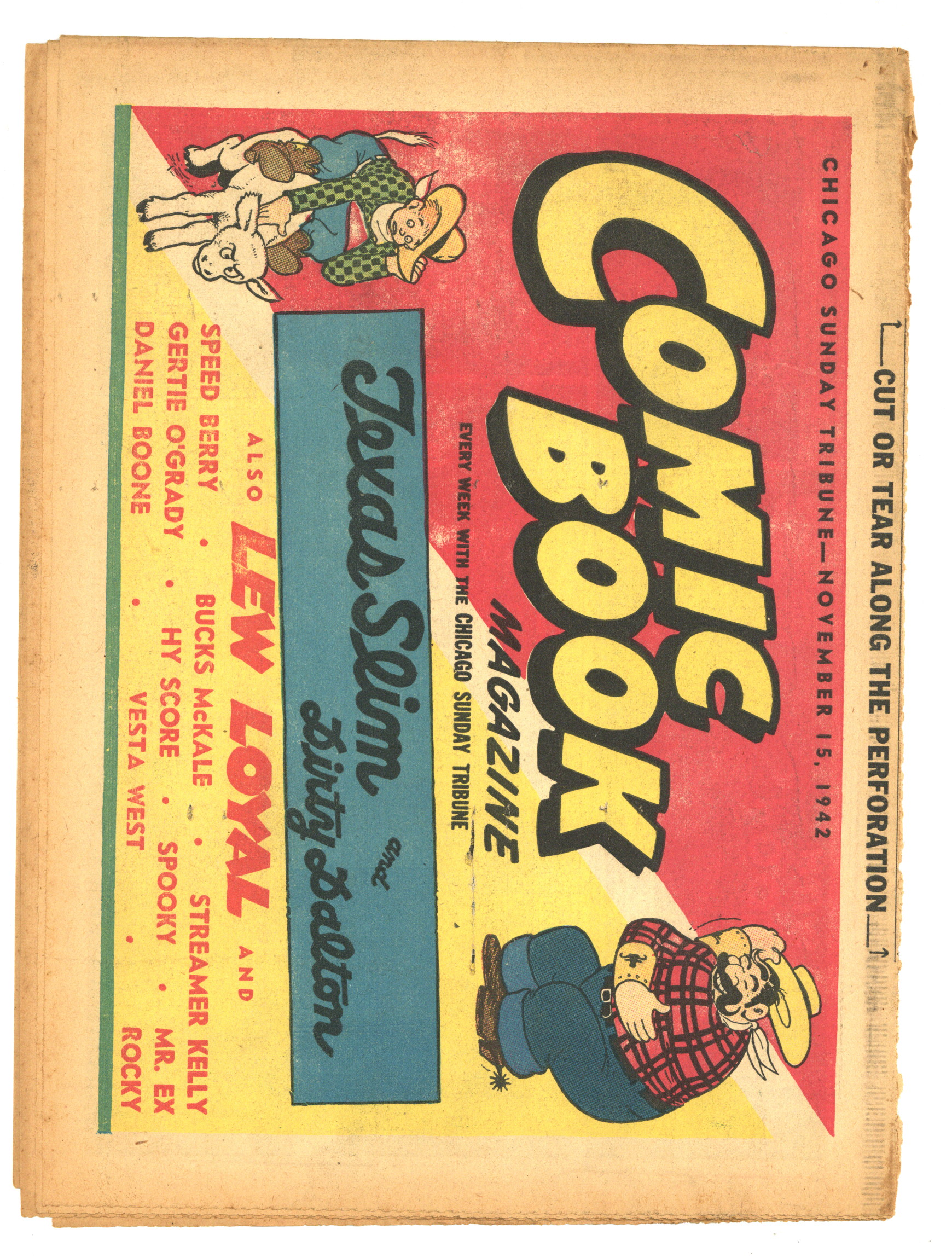 Published Nov 1942 by Chicago Tribune.$40.00November 15, 1942. Comic Book Magazine is published by the Chicago Tribune. Enjoy such comic strips as Texas Slim and Dirty Dalton, Lew Loyal, Kit Cabot, Spooky, Fighting with Daniel Boone, and many more. Originally came each Sunday with the Chicago Sunday Tribune. 16 pages, full color, 18.50-in X 13.25-in.