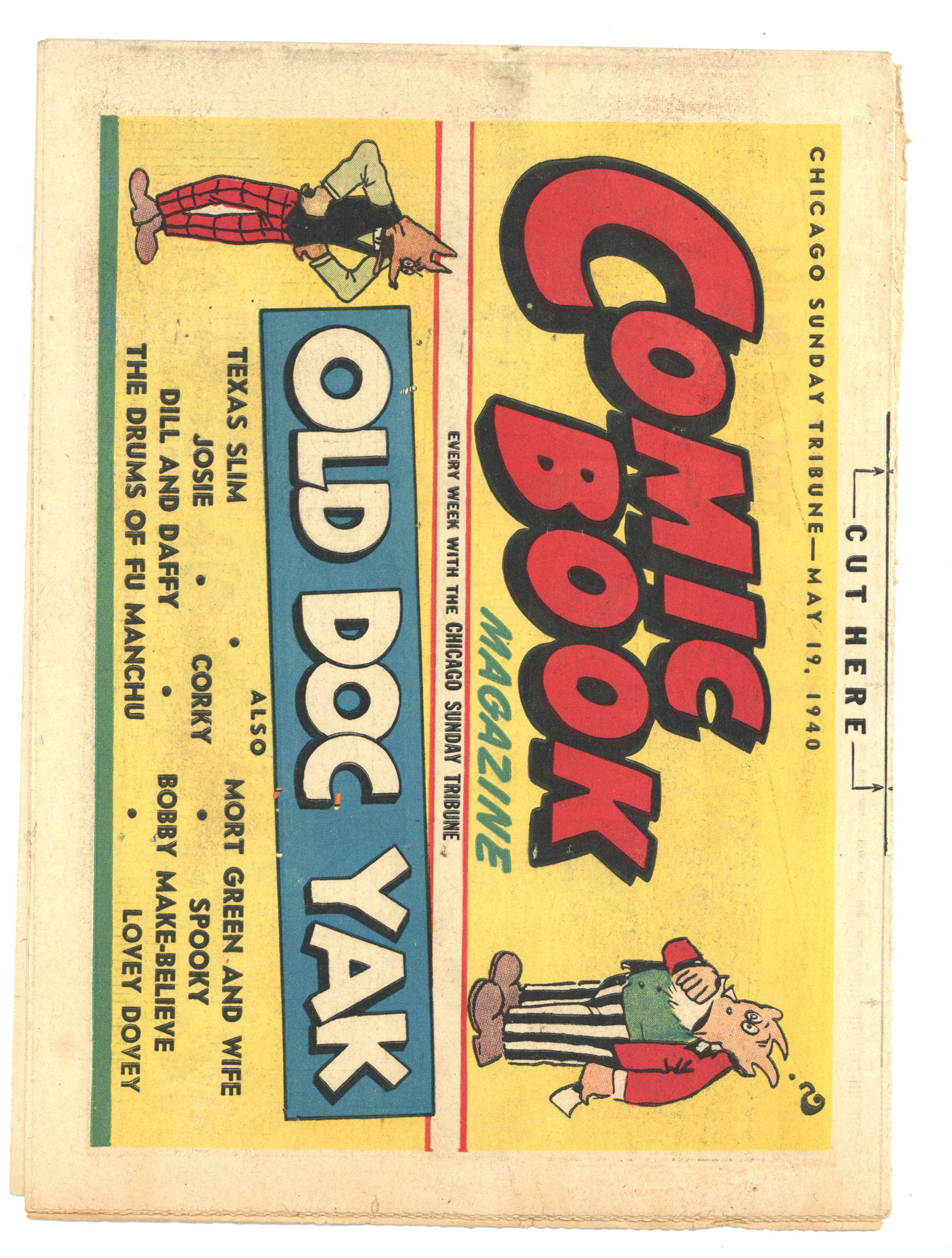 Published May 1940 by Chicago Tribune.$40.00May 19, 1940. Comic Book Magazine is published by the Chicago Tribune. Enjoy such comic strips as Texas Slim and Dirty Dalton, Lew Loyal, Kit Cabot, Spooky, Fighting with Daniel Boone, and many more. Originally came each Sunday with the Chicago Sunday Tribune. 16 pages, full color, 18.50-in X 13.25-in.