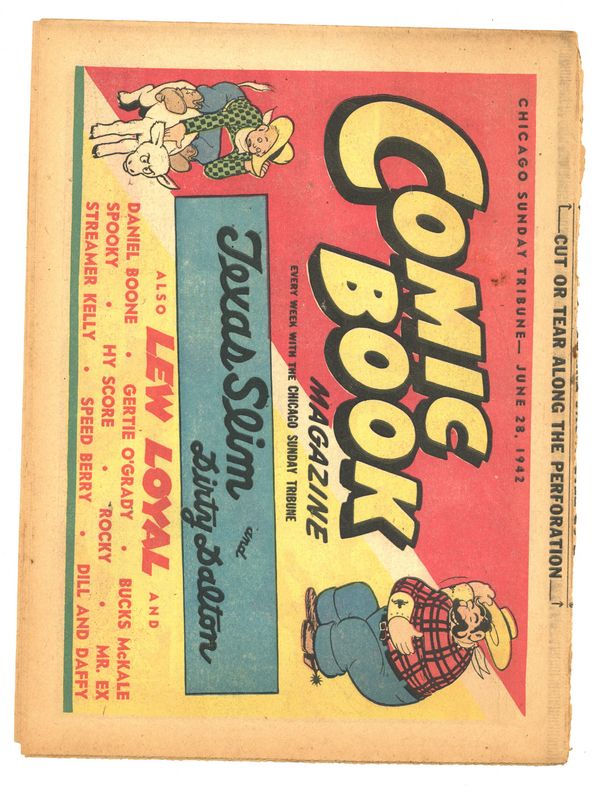Published Jun 1942 by Chicago Tribune.$40.00June 28, 1942. Comic Book Magazine is published by the Chicago Tribune. Enjoy such comic strips as Texas Slim and Dirty Dalton, Lew Loyal, Kit Cabot, Spooky, Fighting with Daniel Boone, and many more. Originally came each Sunday with the Chicago Sunday Tribune. 16 pages, full color, 18.50-in X 13.25-in.