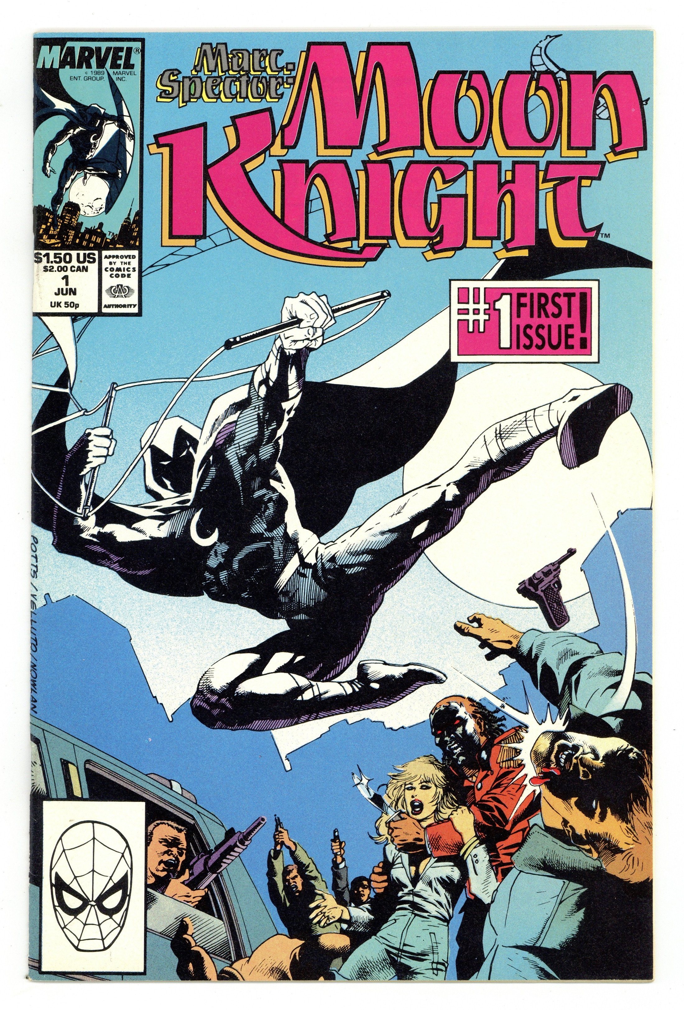 Tags: Marvel Legacy Numbering: Moon Knight (part 45), Moon Knight$18.00New Moon - Written by Chuck Dixon. Art by Sal Velluto & Mark Farmer. Cover by Carl Potts, Sal Velluto & Kevin Nowlan. By popular demand, the white Avenger returns in an all-new series! And Marc Spector's first adventure brings him face to face with the man who caused him to become Moon Knight -- Bushmaster! 32 pages, full color. Cover price $1.50.