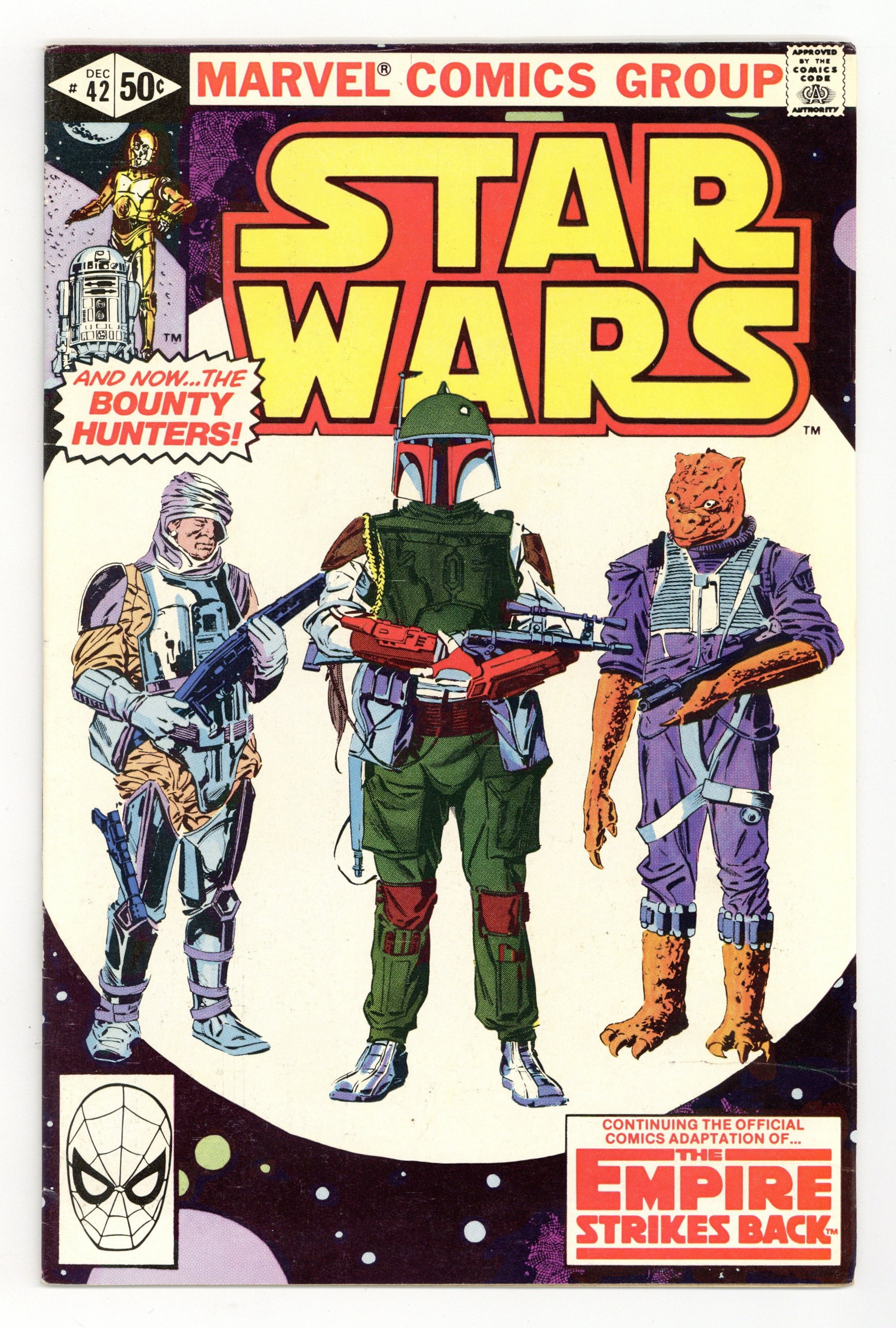 Direct Edition. The Empire Strikes Back: Part 4 of 6. And now...the bounty hunters! "To Be a Jedi!" Script by Archie Goodwin, art by Al Williamson and Carlos Garzon. Note: Part 4 of movie adaptation; based on the movie script; Williamson and Garzon both pencil and ink the art for this series. Plus: 5-page "Star Wars British Cover Gallery," featuring art by Carmine Infantino, Gene Day and Dan Green. Cover by Williamson and Garzon. Cover price $0.50.