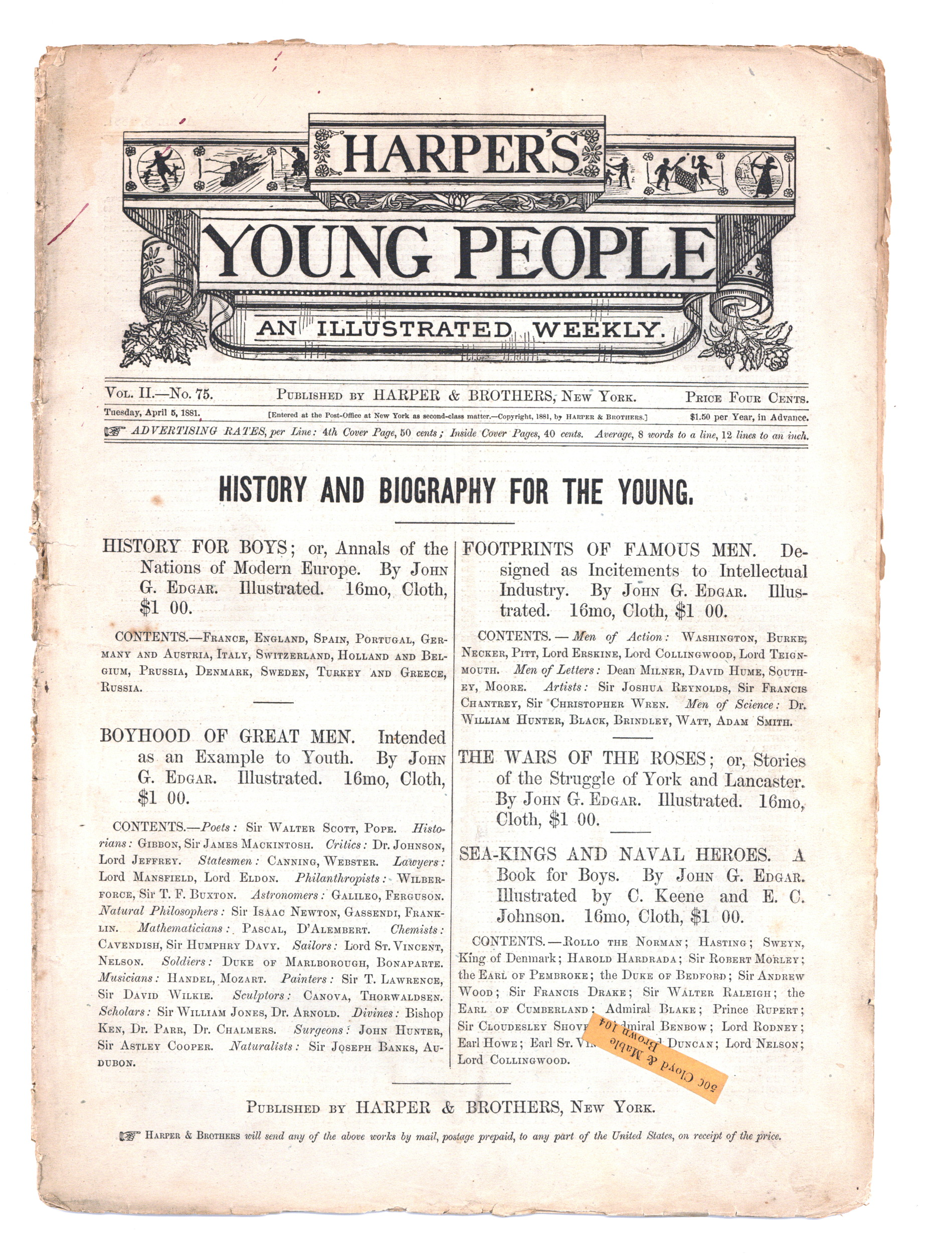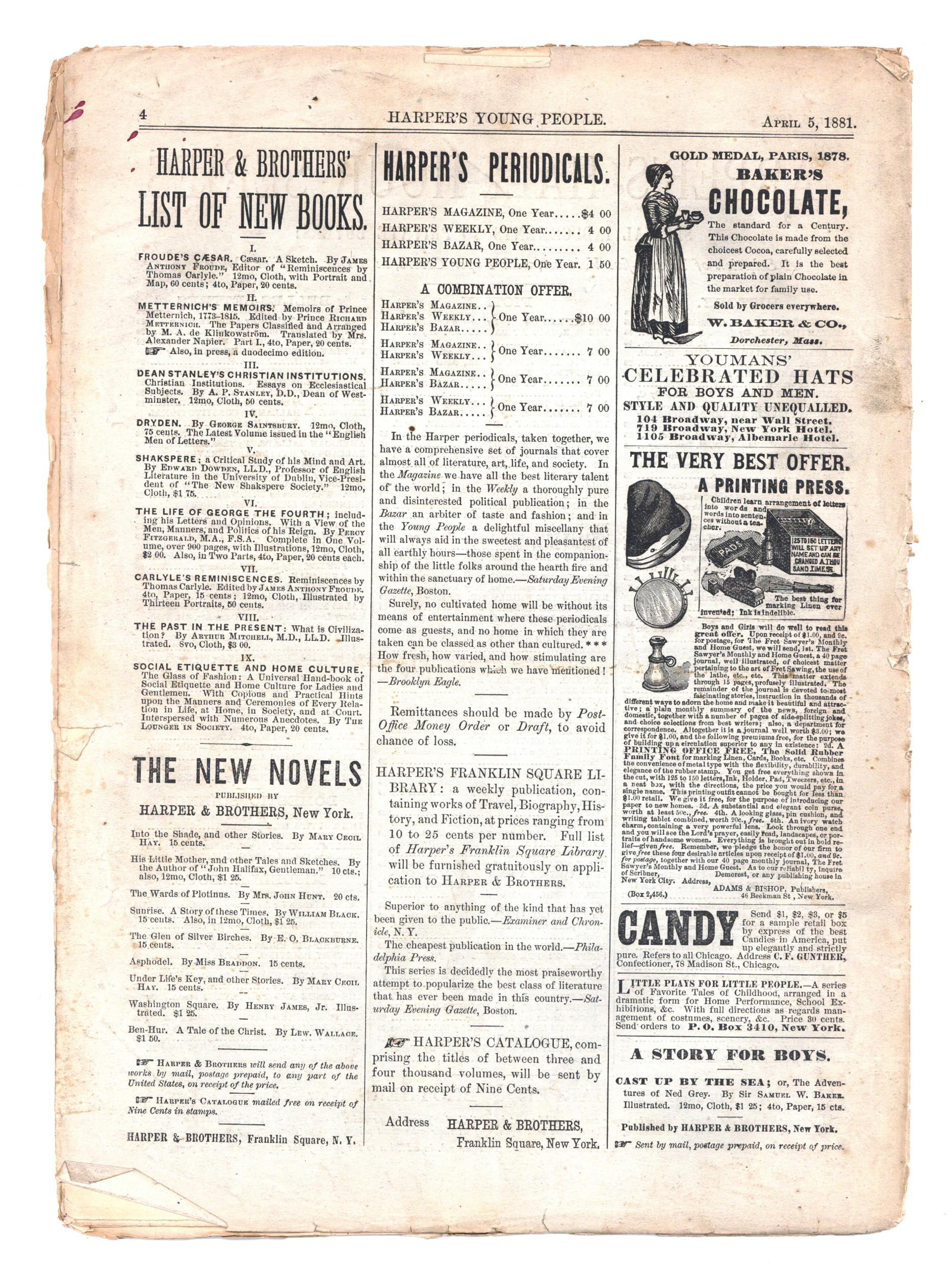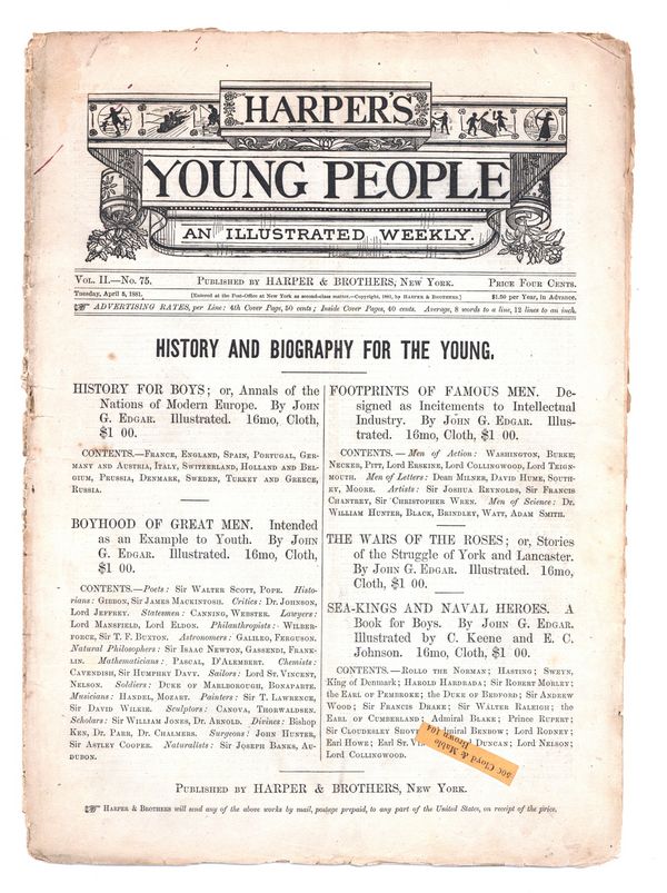 Published Apr 1881 by Harper & Brothers Publish.$20.00- Water damage: Slight.