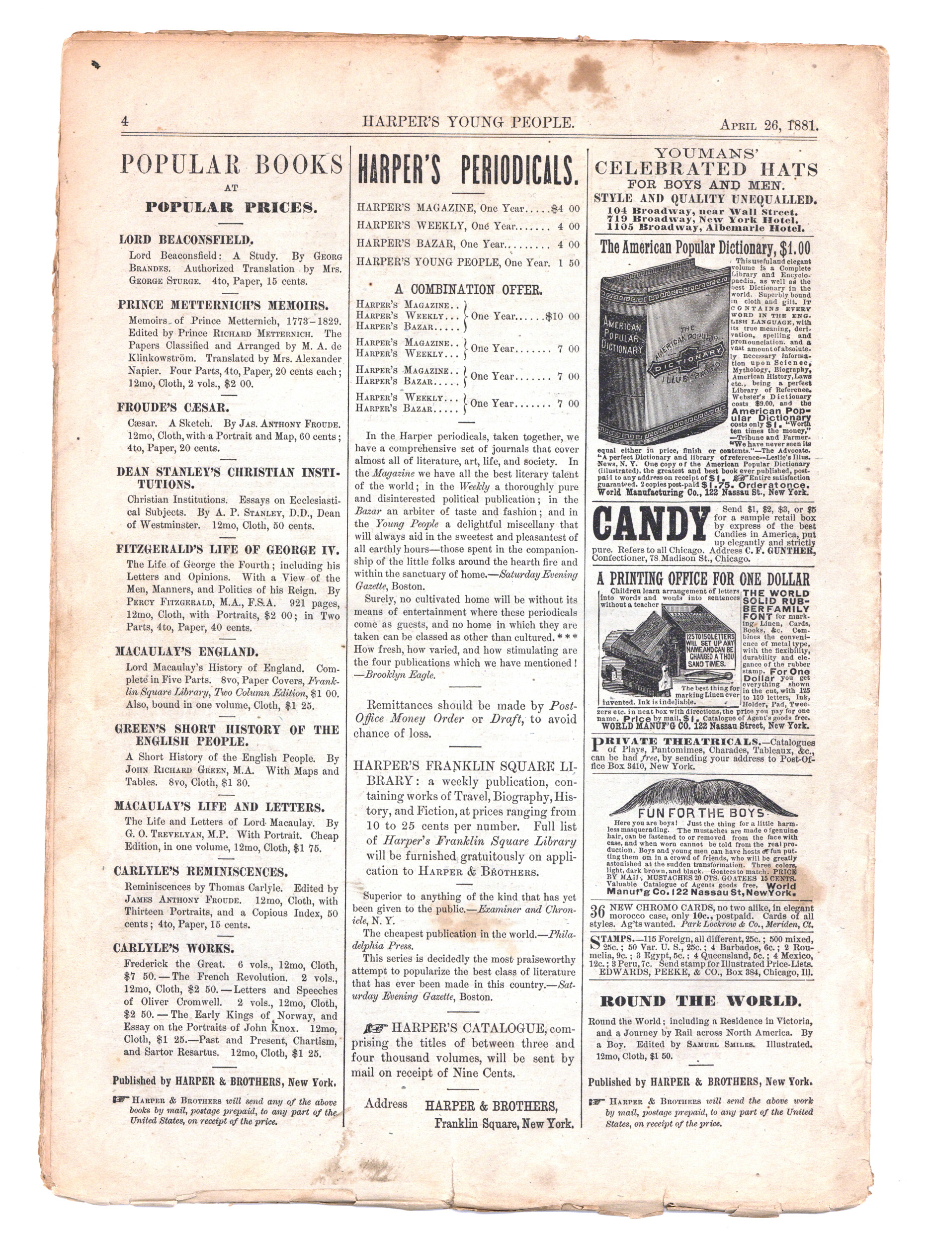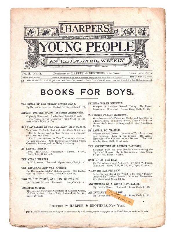 Published Apr 1881 by Harper & Brothers Publish.$36.00If you add this item to your want list, we will email you when it becomes available.