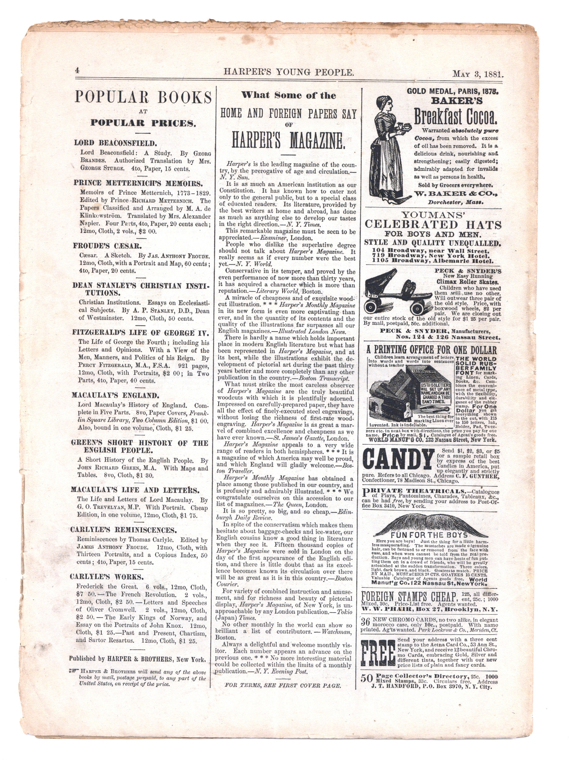 Published May 1881 by Harper & Brothers Publish.$16.00If you add this item to your want list, we will email you when it becomes available.