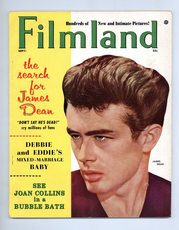 James Dean photo cover. Film fan magazine with a focus on the celebrity lives of the golden-age of cinema. 8.5" x 11", 76 pages, B&W. Cover price $0.25.