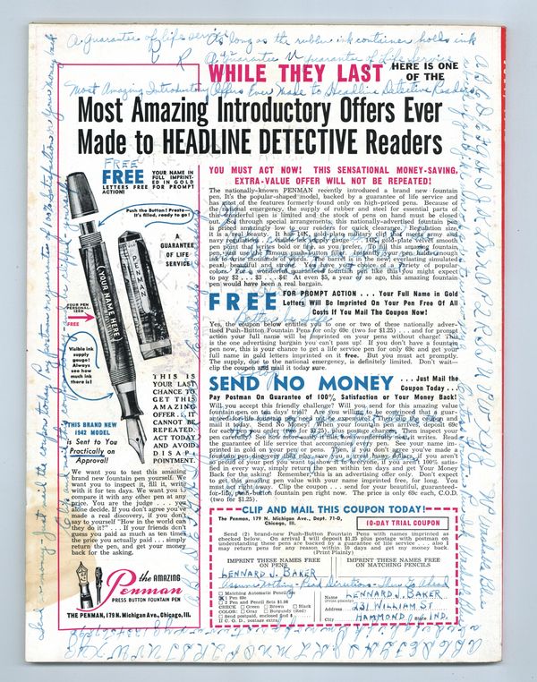 Published Jul 1943 by Headline Detective Publishing Co..$28.00- Water damage: Moderate.