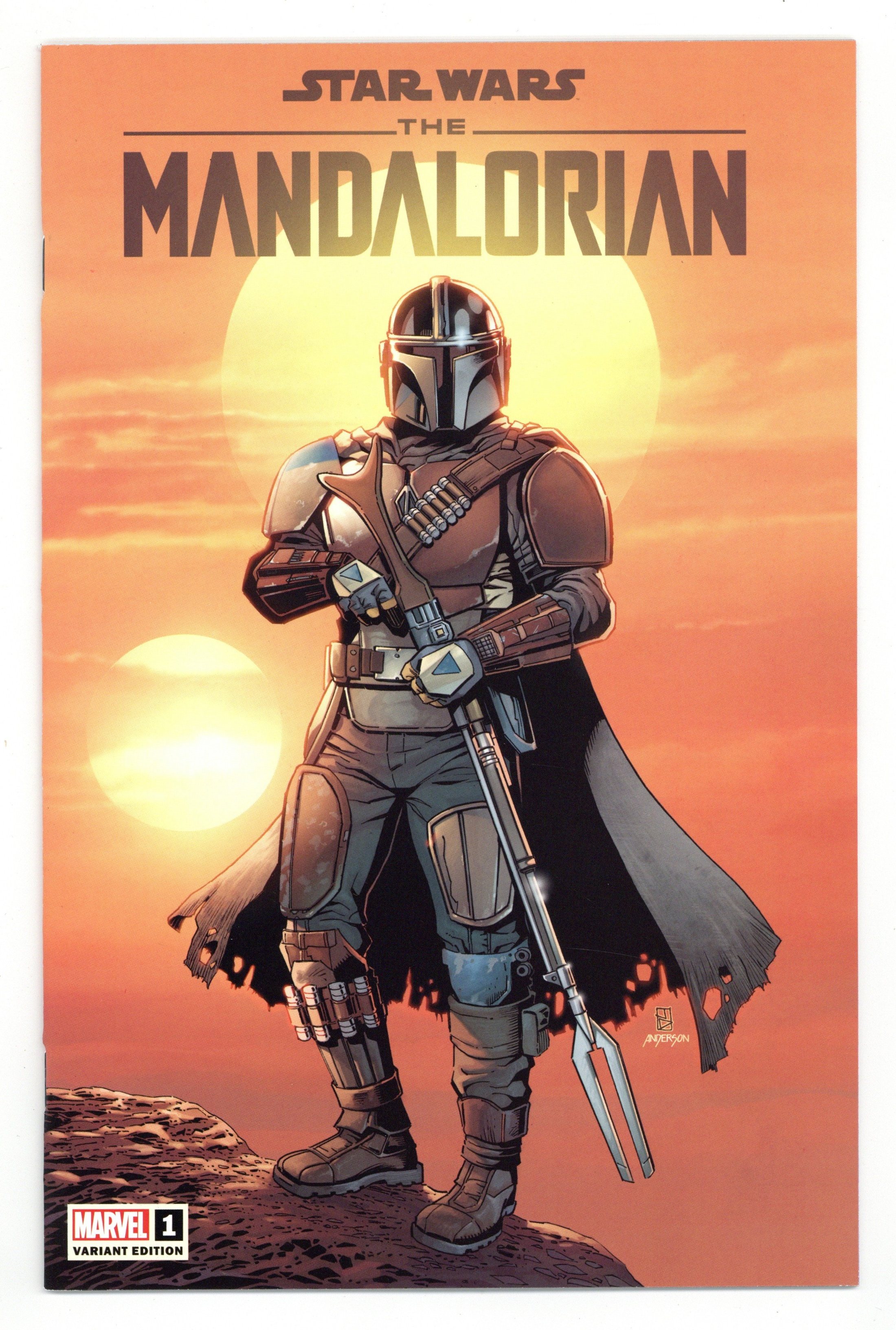 Tags: Star Wars$3.49ComicXposure Exclusive Variant Cover by Jan Duusema. Written by Rodney Barnes. Art by Georges Jeanty. For the first time, THE MANDALORIAN arrives in comics! The Mandalorian bounty hunter tracks a target for a well-paying, mysterious client. Witness the introduction of Din Djarin and the first meeting between the Mandalorian and the Child! 40 pages, full color. Rated T