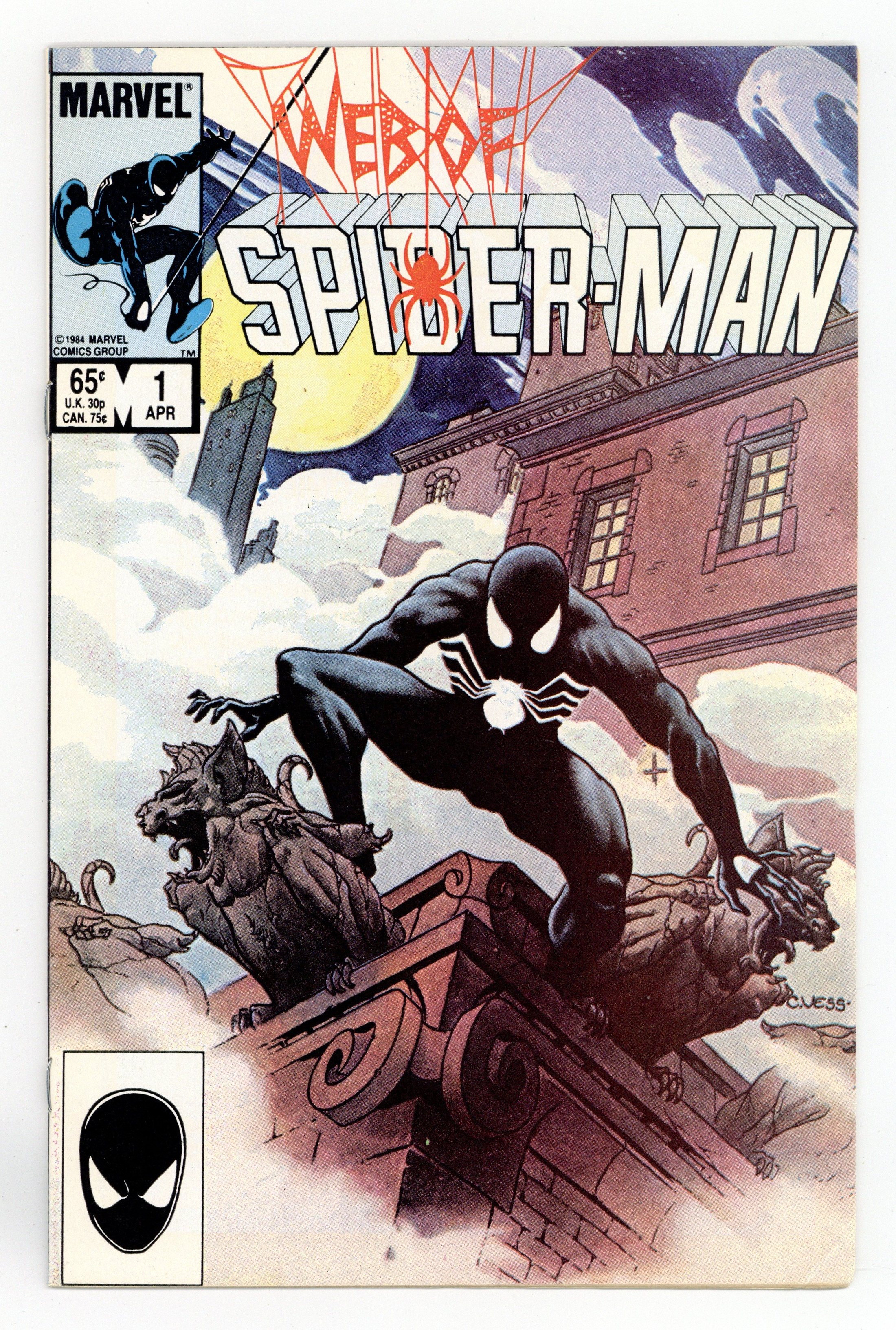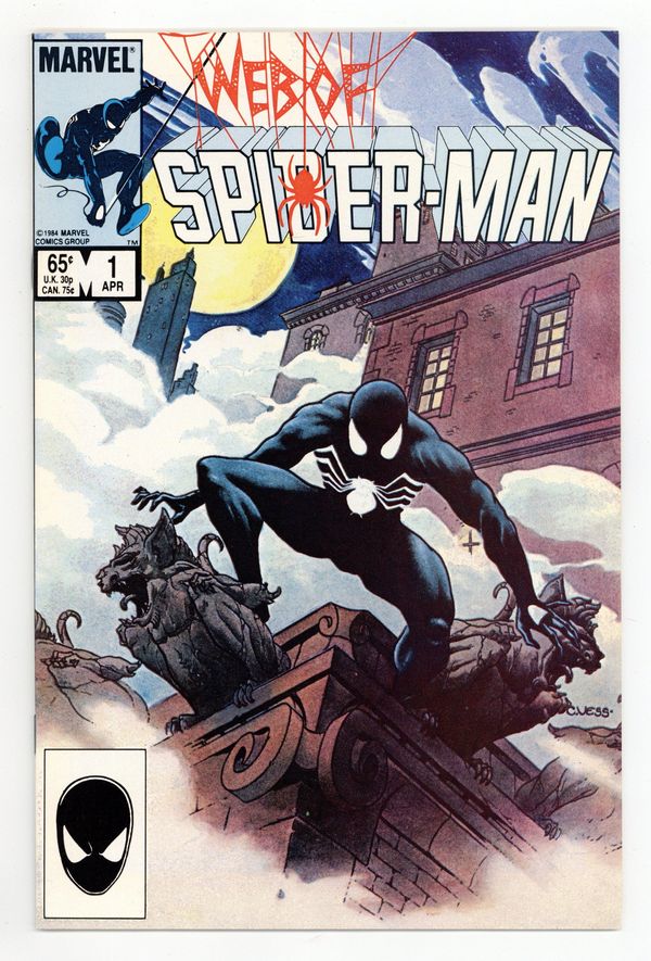 Tags: Spider-Man$56.00Direct Edition. "Til Death Do Us Part!" Story by Louise Simonson. Art by Greg LaRocque and Jim Mooney. Painted cover by Charles Vess. The alien symbiote (aka black costume) ambushes Peter Parker while he is getting dressed. Now Spider-Man must battle the black costume and the new Vulturions on his way to the Baxter Building! Meanwhile, Aunt May laments Peter's decision to drop out of graduate school. (Note: The Web of Spiderman series essentially replaced the Marvel Team-Up title as Marvel's third regular series featuring Spider-Man.) 32 pages Cover price $0.65.