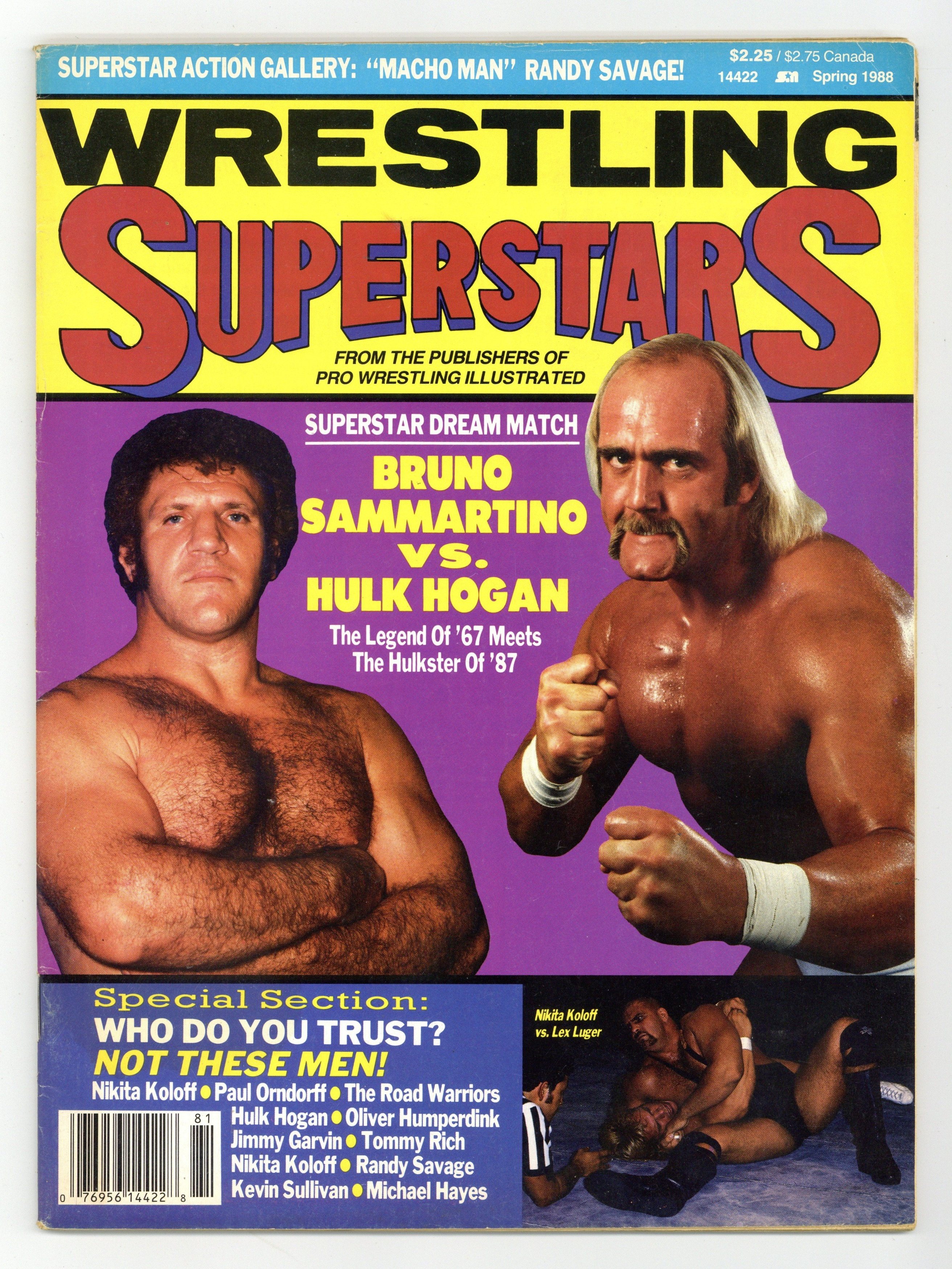 Published Mar 1988 by G.C. London.$16.00Bruno Sammartino and Hulk Hogan cover. 8" X 10 3/4". Cover price $2.25.