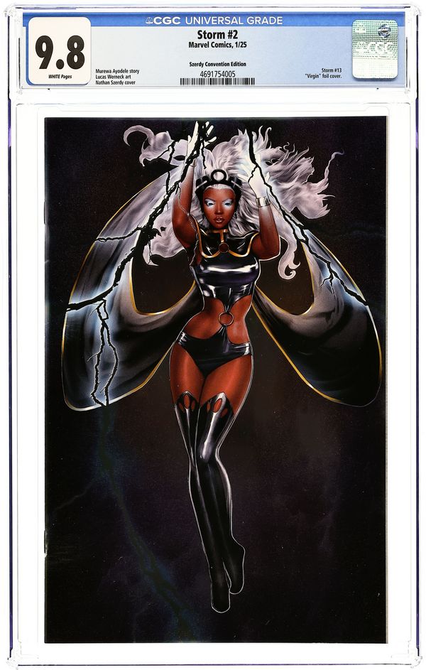 Comics Illuminati (Unknown Comic Books, Comic Traders, and Sleeping Giant) Convention Exclusive Spot Foil Virgin Cover by Nathan Szerdy. Written by Murewa Ayodele. Art by Lucas Werneck. STORM is dying. An unknown form of radiation poisoning from the OKLAHOMA INCIDENT has turned her cells into ticking time bombs. As her final hours count down, will she find a cure for her illness at NIGHT NURSE's new super-hero hospital, or will it require enchantments from DOCTOR VOODOO to save her life? 28 pages, full color. Rated T+
