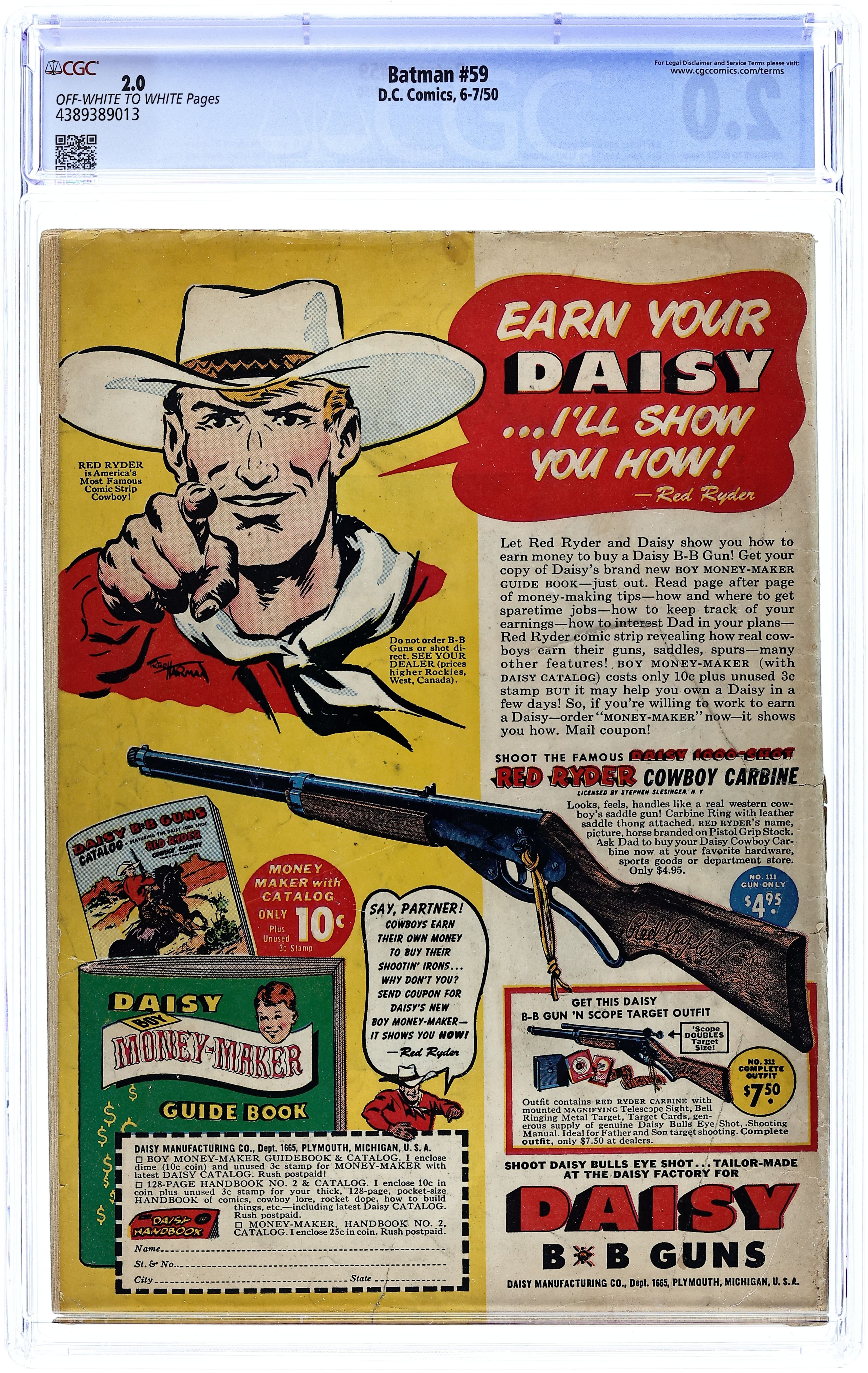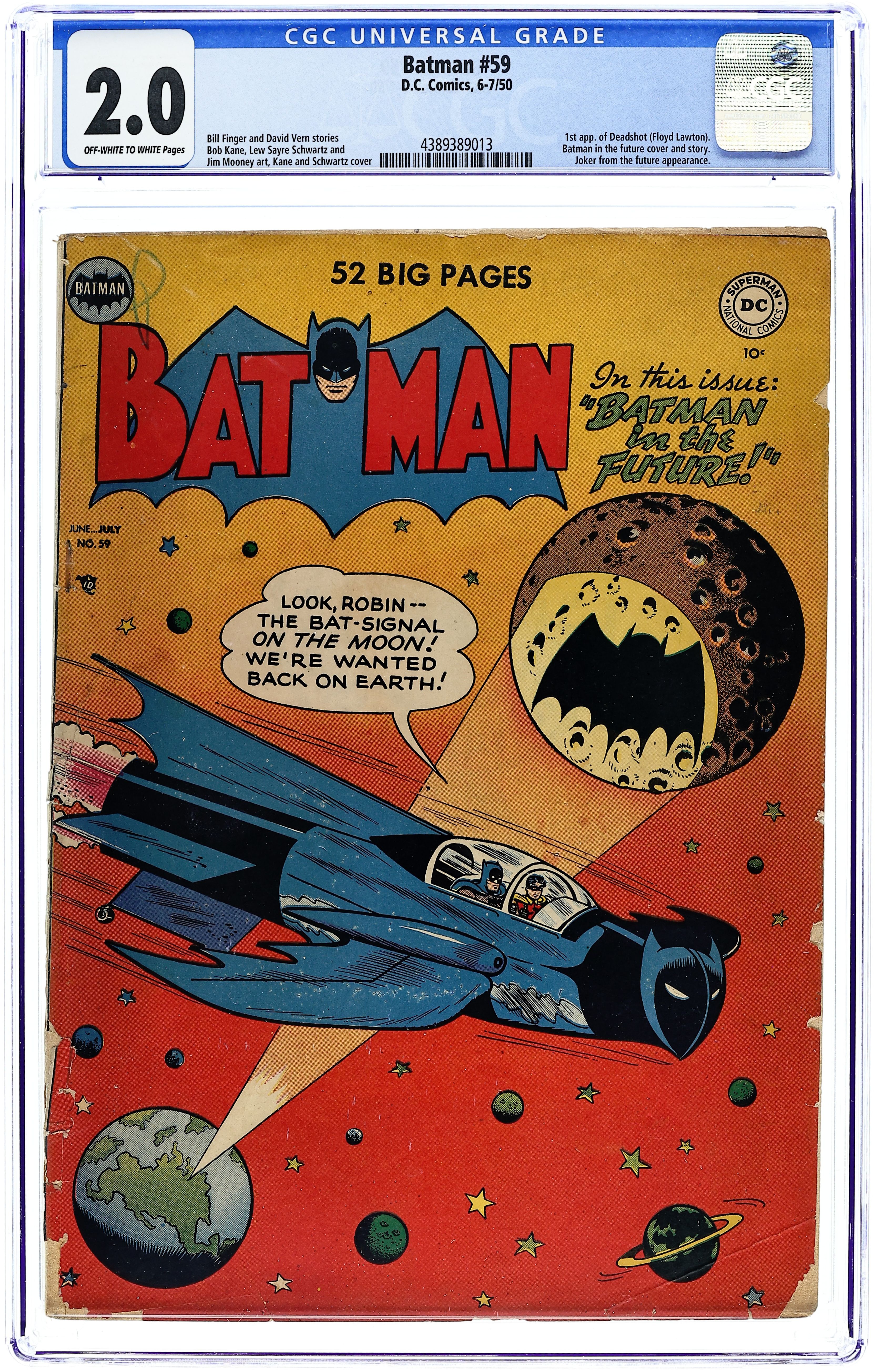 Cover pencils by Bob Kane (Batman and Robin figures only) and Lew Sayre Schwartz, inks by Charles Paris. Intro and first appearance of The Man Who Replaced Batman!, script by David Vern, pencils by Bob Kane (Batman and Robin figures only) and Lew Sayre Schwartz, inks by Charles Paris; A new hero, a marksman called Deadshot, arrives in Gotham City; His primary goal as Gotham's new vigilante is to upstage Batman as the prime crime fighter; It turns out Deadshot plans to become the new crime lord of Gotham by taking out Batman. The Forbidden Cellar!, art by Jim Mooney; The legend of a cursed cellar of an old building in Gotham begins to spread; The citizens of Gotham try to debunk the myth; Batman goes inside and discovers that there is a poisonous mushroom inside that turned people into crazy maniacs. One-page Casey the Cop story by Henry Boltinoff. Look It Up! text article, art by Raymond Perry. -page Shorty story by Henry Boltinoff. Batman In the Future!, script by Bill Finger, pencils by Bob Kane (Batman and Robin figures only) and Lew Sayre Schwartz, inks by Charles Paris; Batman and Robin capture the Joker and ask him about his ultimate motives for crime; He tells them that his ancestors were criminals; Bruce and Dick ask Professor Carter Nichols to send them into the past to investigate, but he mistakenly sends them to the future where they meet a descendant of the Joker called Rokej. 52 Pages, Full Color. Cover price $0.10.
