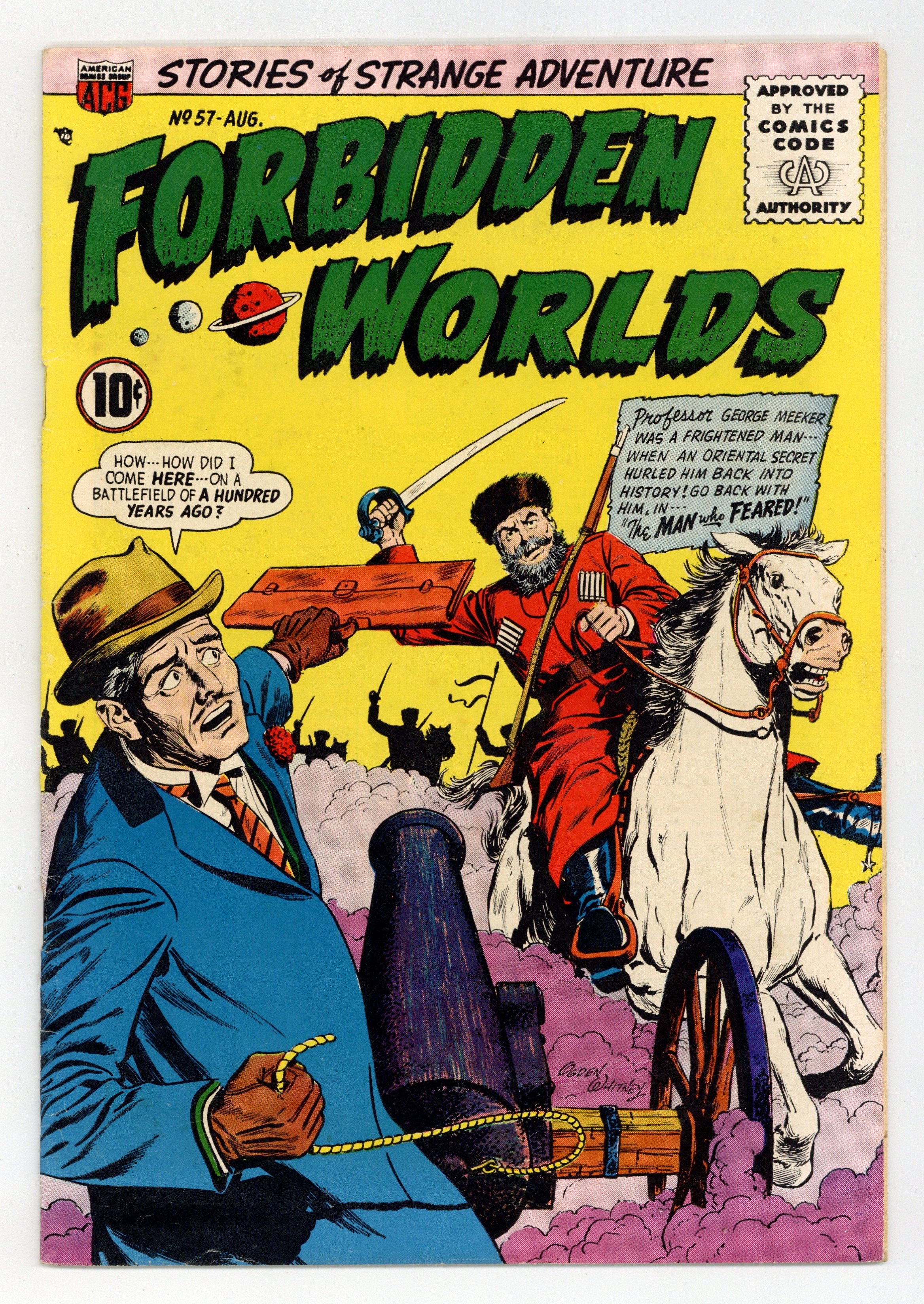 Cover by Ogden Whitney. Edited by Richard E. Hughes. Art by John Rosenberger, Bob Jenney and Harry Lazarus. An anthology series featuring tales of fantasy and science fiction adventure from legendary early independent comics publisher ACG. A man speaks to his dead wife through the picture window in his secluded house; A man finds himself hurled into the past; A stranded soldier is rescued by the St. Bernard named Bozo he had as a child many years before. The Time Capsule!; Behind the Picture Window; Thanks to Mr. Peabody!; The Eternal Hunter!; The Man Who Feared!; The Faithful Bozo! 32 pages, Full Color. Cover price $0.10.