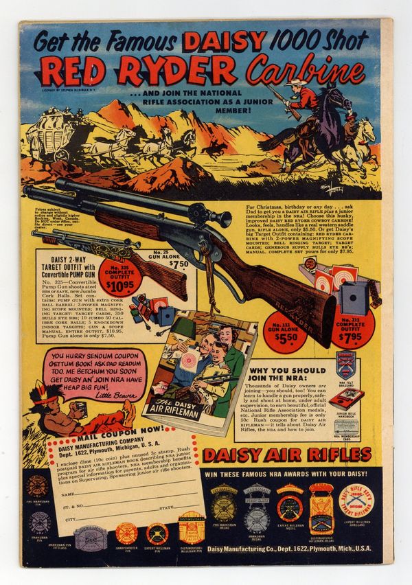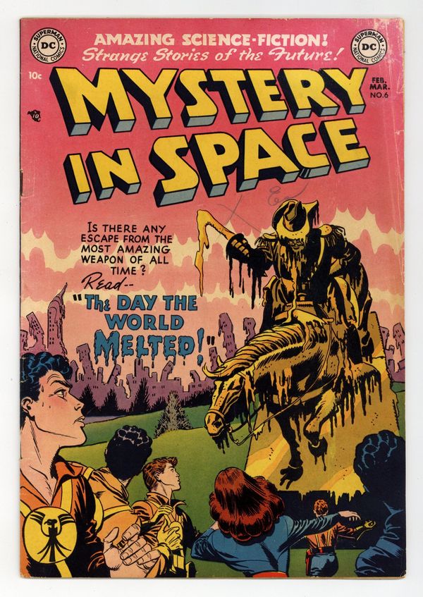 Knights of the Galaxy in "The Day the World Melted" (script by Robert Kanigher as "Dion Anthony," pencils by Carmine Infantino?), "The Boy Who Saved the Earth" (script by "John Osgood"), "The Man Who Hated Science" (script by Jack Miller), and "Cowboy on Mars" (script by "Manny Rubin"). One-page Tootsie Roll ad, "Captain Tootsie and the Radar Rescue." 36 Pages, Full Color. Cover price $0.10.