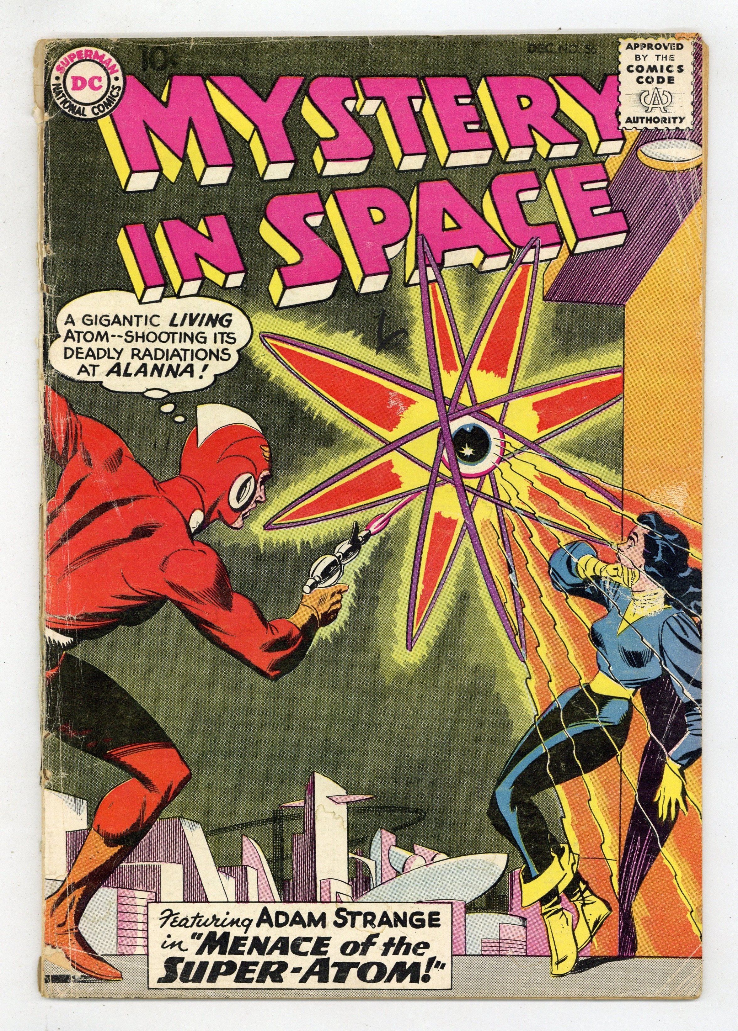 Adam Strange stars in "The Menace of the Super-Atom!" (pencils by Carmine Infantino). Back-up stories: "Raiders of the Waterless World!" (pencils by Gil Kane) and "Super-Cook of Space!" Kane cover pencils (Infantino inks?). 36 Pages, Full Color. Cover price $0.10.