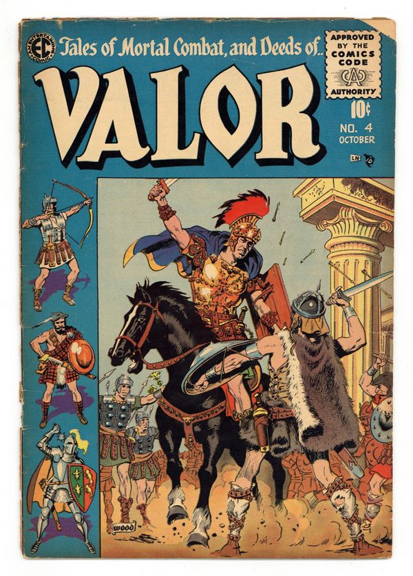 Cover by Wally Wood. Art by Joe Orlando, Reed Crandall, Graham Ingels, and Bernie Krigstein. One of EC Comics' late New Direction titles, a response to the new Comics Code, featuring historical adventure. An assassin is hired as a food-taster for the cruel Borgia family during the Italian Renaissance, with art by Graham Ingels. A Scottish noble is abducted by a British counter-revolutionary in 1745, illustrated by Bernie Krigstein. A Crusader faces a Muslim champion to seal a city's fate, in a story by Reed Crandall. Gratitude; The Alamo; The Know-Nothing; The Taste of Freedom; A Knights Dream. 32 pages, Full Color. Cover price $0.10.