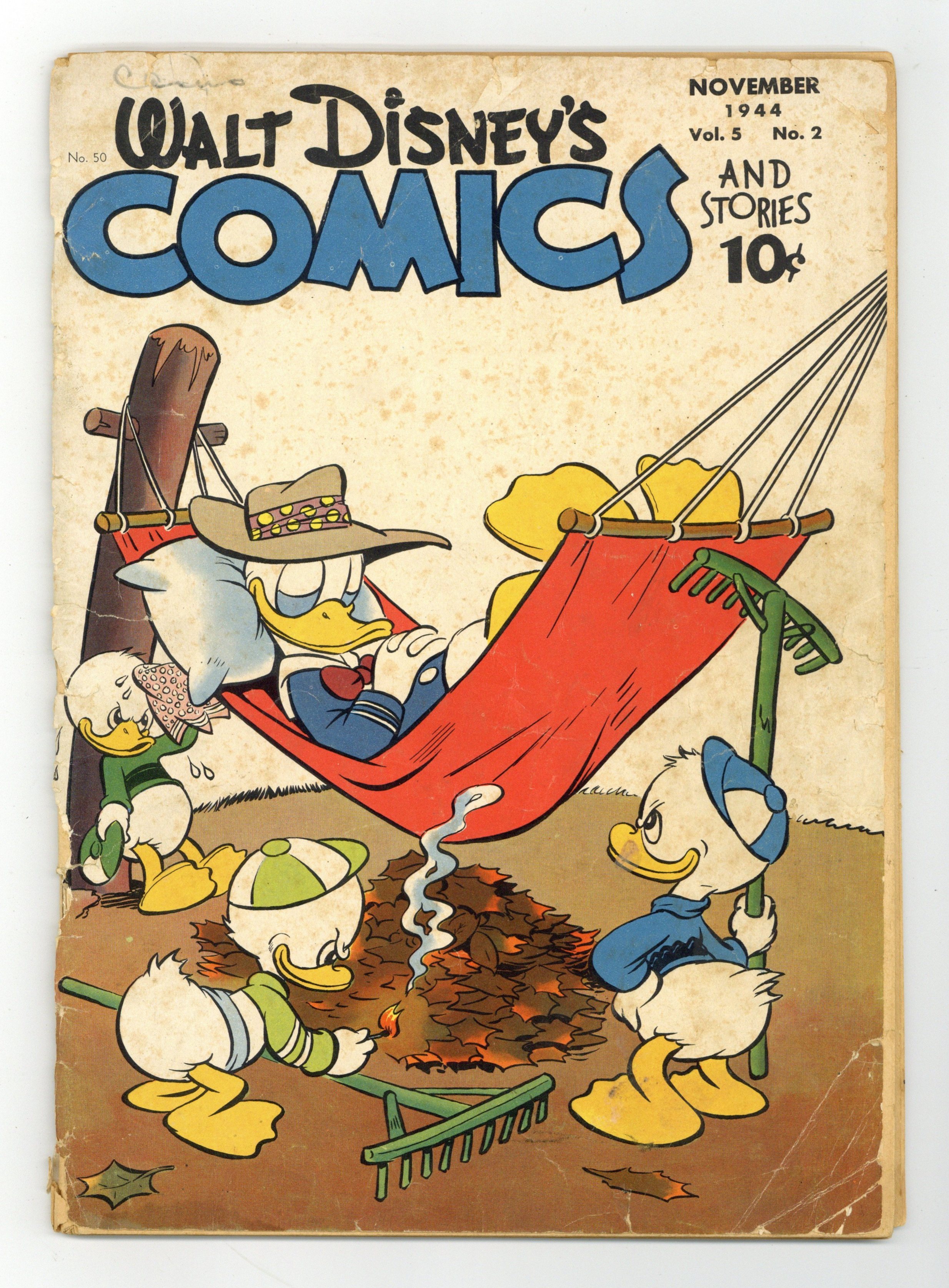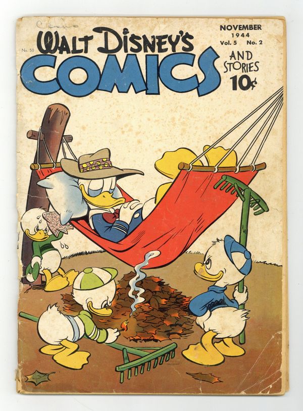 Tags: Disney Ducks & MicePublished Nov 1944 by Dell/Gold Key.$39.00- 5.5" Cumulative spine split. Cover and centerfold detached.