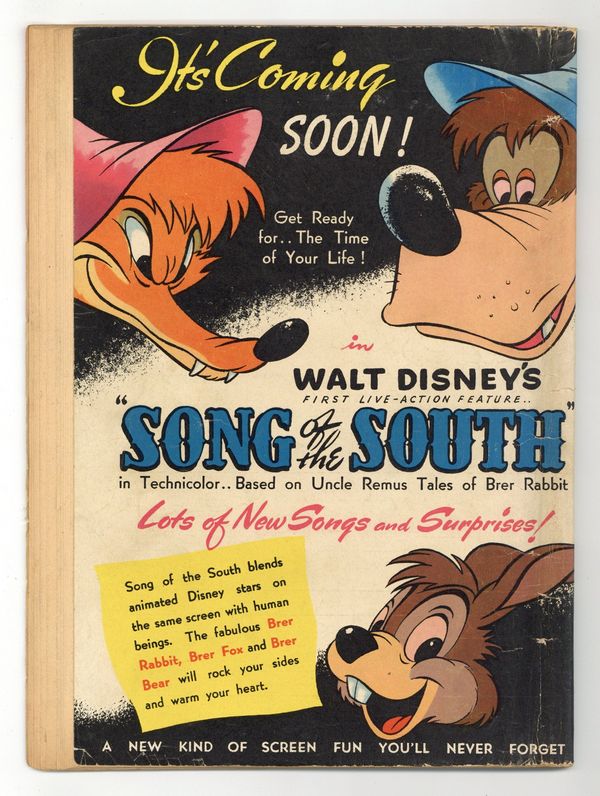 Cover by Walt Kelly. Stories and art by Carl Barks, Floyd Gottfredson, Bill Walsh, Bob Karp, Hubie Karp, Roger Armstrong, George Waiss, Bill Wright, and Al Taliaferro. Sometimes listed as Vol. 7 #5. The long-running vehicle for Disney character comics featured work by Carl Barks, Floyd Gottfredson, and Pogo's Walt Kelly. In a classic story from the Mickey Mouse comic strip, Mickey's new landlord wants to evict him. In a story by Barks, Donald's nephews go to great lengths to convince Donald that his homemade bug spray creates giant bugs. Bucky Bug gets help from Santa when a discarded Christmas tree threatens to crush the town. Donald Duck; Bucky Bug; Li'l Bad Wolf; Mickey Mouse; Goofy: The Big Wash; Br'er Rabbit; The New Idea; Straight Shooters; Mickey Mouse: Eviction. 48 pages, Full Color. Cover price $0.10.