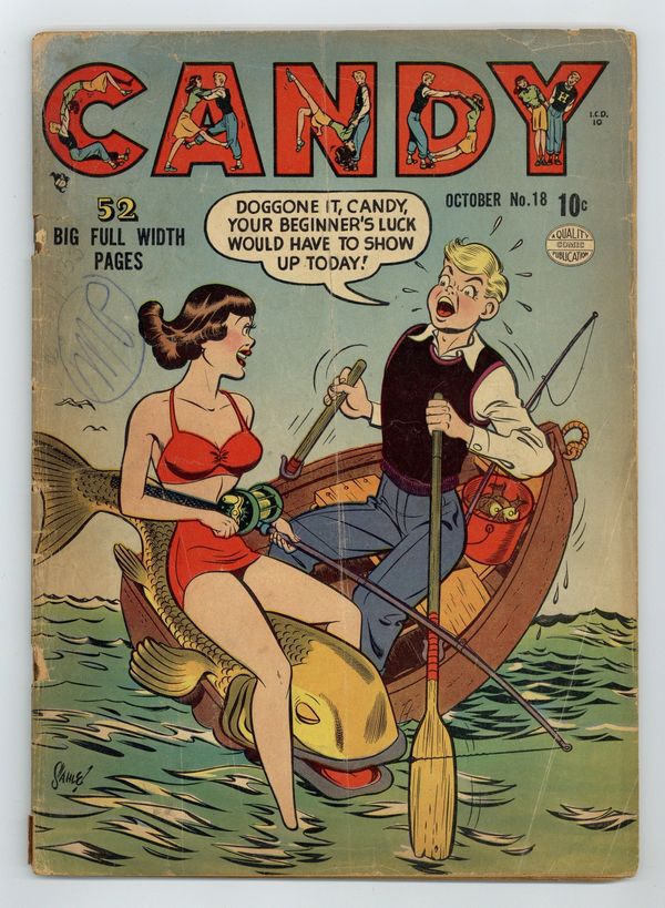 Cover by Harry Sahle. Stories by unknown. Art by Harry Sahle and unknown. Candy stars in five untitled stories. Plus: Jitters in an untitled story co-starring Bugs, Dotty and Slugger Sloan. Also: Jonesy in 1-page untitled story co-starring Pete, Jonesy's mother and Abigail Lane. And: 2-page text story "Dizzy Idea" starring Dizzy, Slim Brady, Mr. Hodges, Gwendolyn Chambers, Mamie Hagger, Sophie Trugg, Windy Blunt, Scuffy and Horsey Jones. 48 pages, full color. Cover price $0.10.