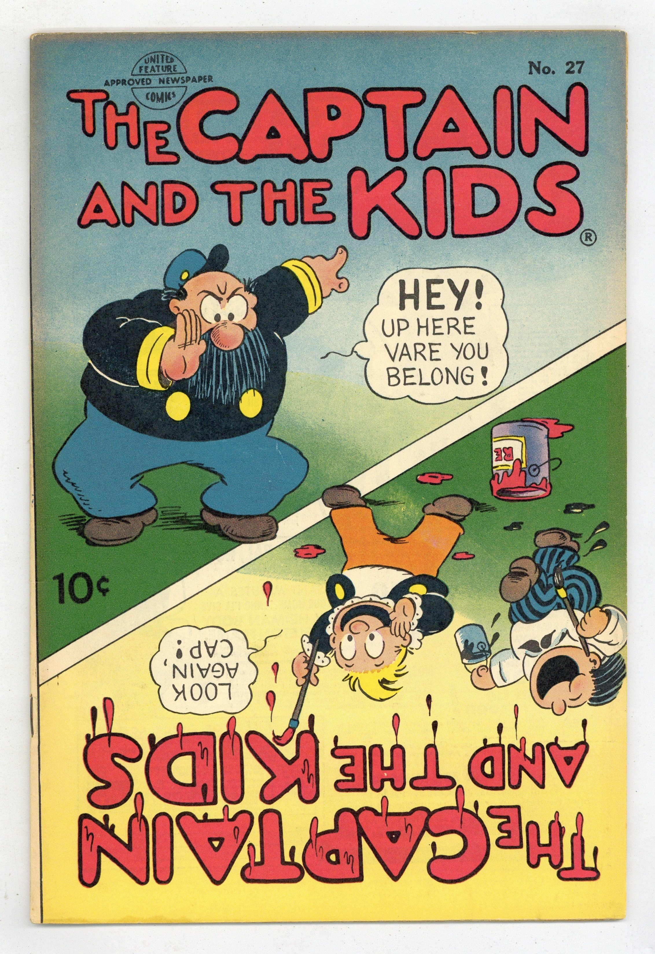 Stories and art by Rudolph Dirks and others. Mama, the Inspector and most of all the Captain bear the brunt of Hans and Fritz's mean-spirited pranks, but the Kids always get it in the end. Decades before Billy Keane in the Family Circus, the kids themselves take over the strip's artwork, and we get to see the results. Lost in the jungle, the family happens upon Professor McDipp and the trained monkeys of his "Jungle School." But when all seems lost, they are saved by the beautiful Princess Tamale and her trained animals. The Captain and the Kids; Our Champs Find Out That a Chimpanzee Ain't the Chump of a Chimp He Appears to Be; You Asked for It, Princess! 32 pages, Full Color. Cover price $0.10.