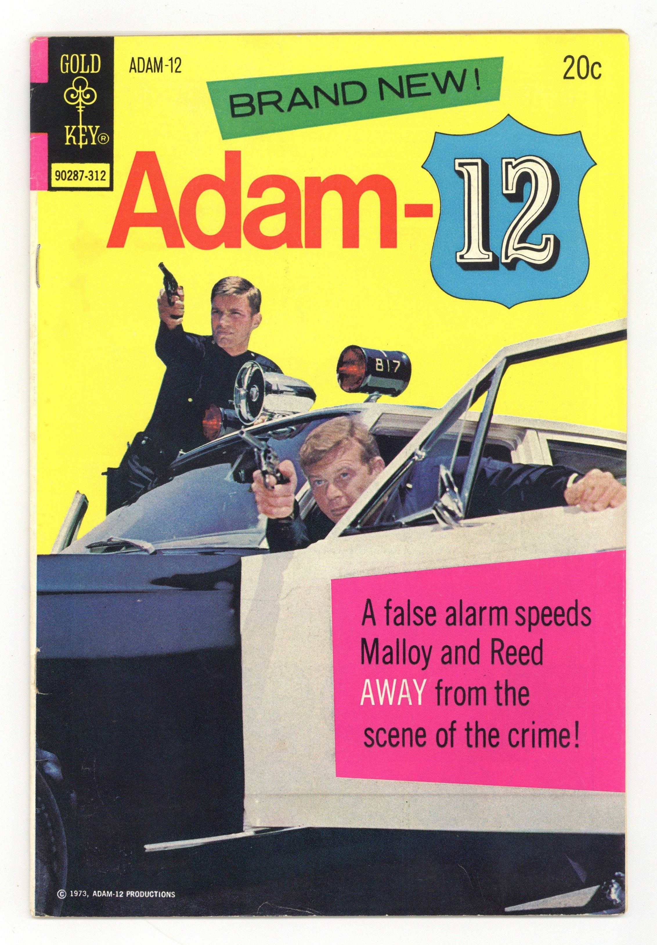 $18.50Photo cover. Comic book based on the TV police drama Adam 12 which aired from 1968 to 1975. Officers Pete Malloy and Jim Reed in "The Wild Wheelers" in which the officers deal with a biker gang bent on revenge and "False Alarm" in which the officers deal with different situations while tracking down a car thief. No story/art credits given. Number on cover: 90287-312 Cover price $0.20.