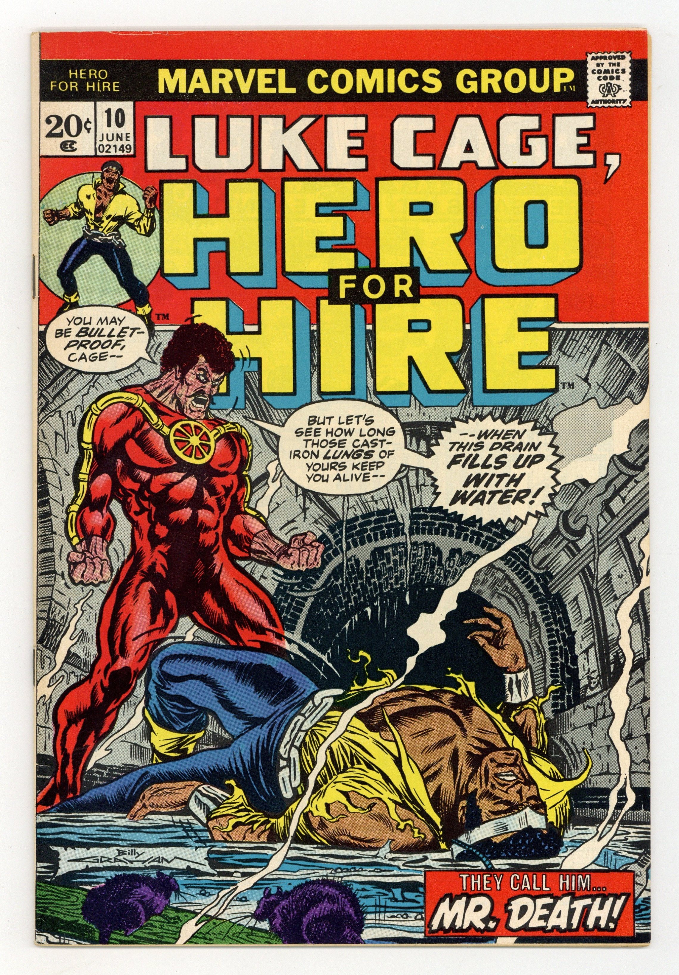 "The Lucky and the Dead!" Script by Steve Englehart, pencils by George Tuska, inks by Billy Graham. "Muerte" means "Death" in Spanish. Luke Cage comes face-to-face with the man called Senor Muerte. This is a man who cannot be stopped, not even by the diamond-hard fists of Power Man. Graham cover. Cover price $0.20.