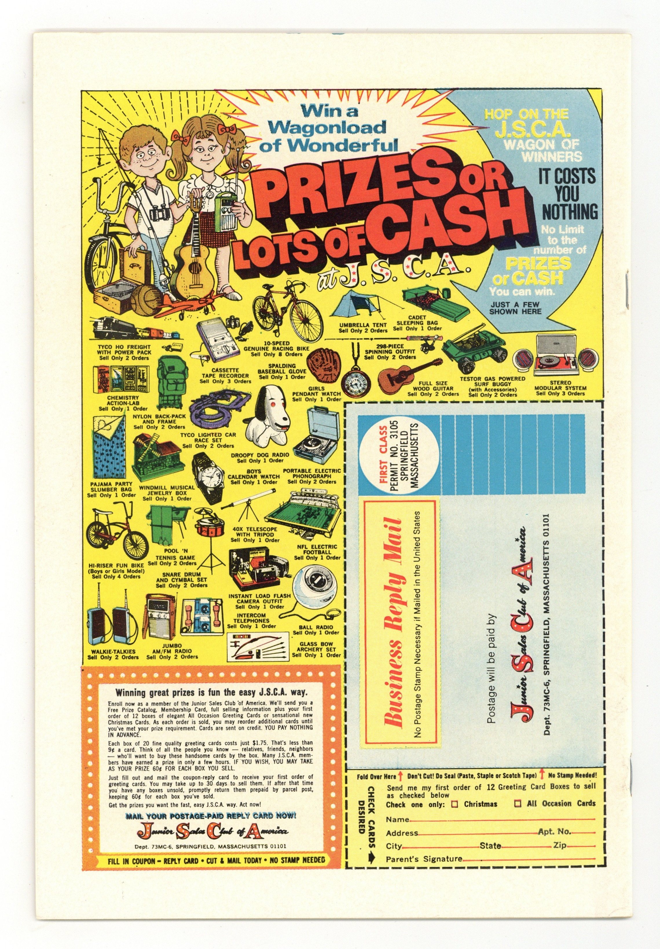 Cover art by John Romita. "Brother Voodoo," script by Len Wein, pencils by Gene Colan, inks by Dan Adkins; Part one of the origin of Brother Voodoo, who is the union of Daniel Drumm's spirit in twin brother Jericho Drumm's body; Drumm returns to Haiti to find his brother dying from the curse of Damballah This is the first Brother Voodoo story; The first appearance of the character occurred in an article in Tales of the Zombie 2. 36 pgs., full color. Cover price $0.20.