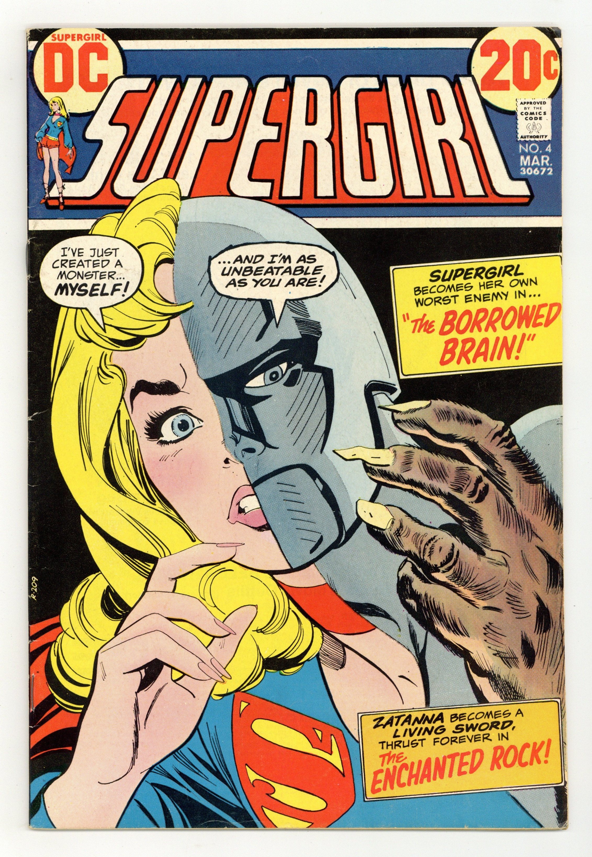Cover art by Bob Oksner. The Borrowed Brain!, script by Cary Bates, pencils by Art Saaf, inks by Vince Colletta; Supergirl accidently gives some of her powers to a crime boss. The Rock of Revenge, script by Cary Bates, art by Don Heck; Zatanna faces off against Merba the Sorcerer. 36 pgs. $0.20. Cover price $0.20.