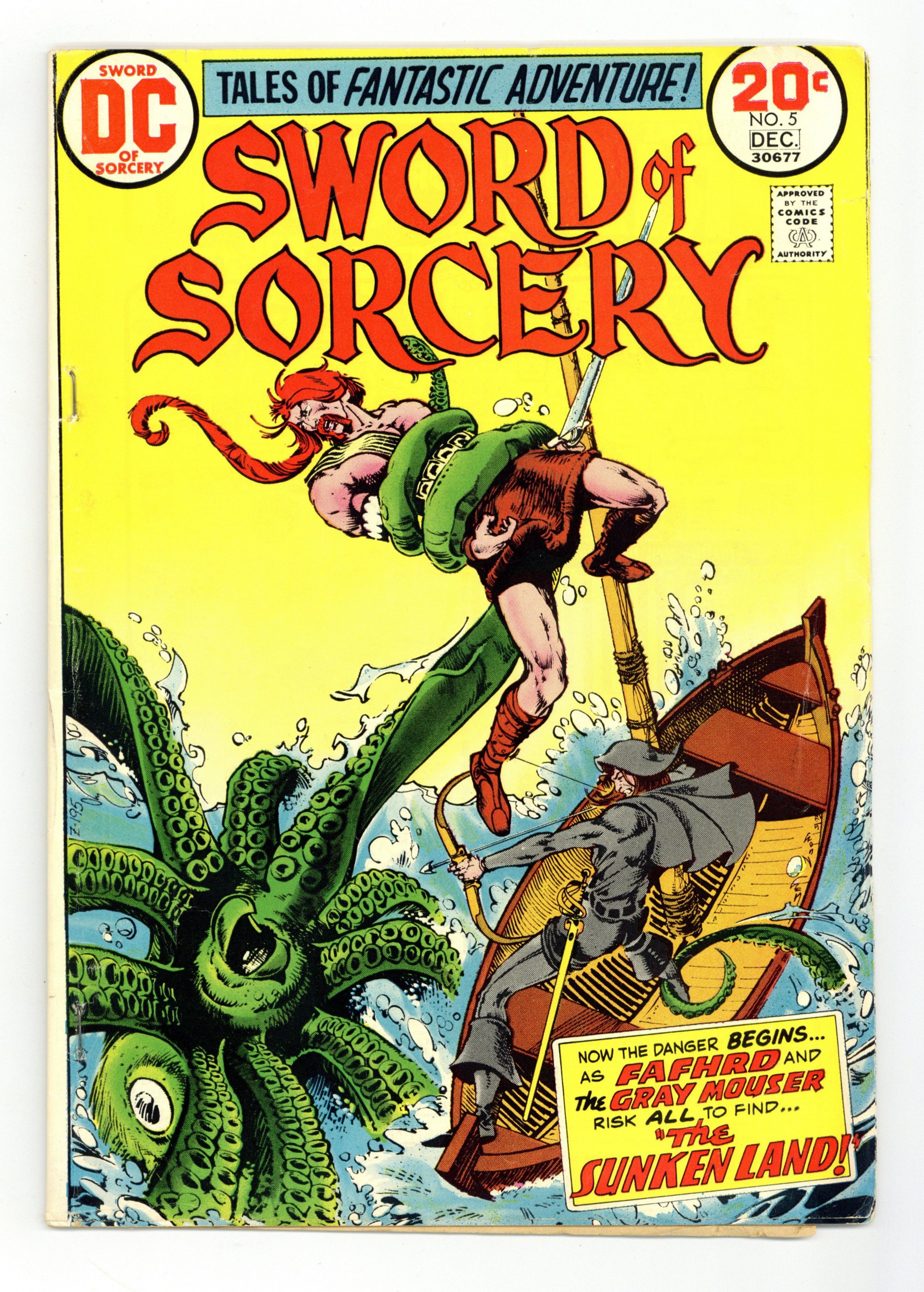 Cover art by Walter Simonson. The Sunken Land starring Fafhrd and the Gray Mouser, script by Fritz Leiber (story) and Denny O'Neil (script), pencils by Walt Simonson, inks by Al Milgrom; Simorgya rises from the sea; Adapted from Fritz Leiber's "The Sunken Land." The Legion of Super-Heroes; Comic Fans--Behind the Scenes at the DC Comic World, script by Paul Levitz, art by Dave Cockrum and Sergio Aragones. The Mouse Alone! starring The Young Gray Mouser, script by George Effinger, pencils by Jim Starlin, inks by Al Milgrom; The Mouse learns to be subtle from a master thief. 36 pgs. $0.20. Cover price $0.20.