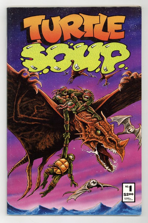 An anthology book featuring Eastman and Lairds Teenage Mutant Ninja Turtles, with stories and art by Steven Bissette of Swamp Thing fame, Stan Sakai, Eric Talbot, Frank Bella, Jim Miller, C.A. Stormon, Francis Mao, Bernie and Danny Shuman, and John Dowling. Black and white; 72 pages. Cover by Bissette, Eastman and Laird. Cover price $2.00. Note: There is also a Manufacturing Error Variant of "Tales of the Teenage Mutant Ninja Turtles (1987)" #3 manufactured with the interior of "Turtle Soup (1987 1st Series) #1. For the Manufacturing Error Variant, please see listing for Tales of the Teenage Mutant Ninja Turtles (1987) #3ERROR. Cover price $2.00.