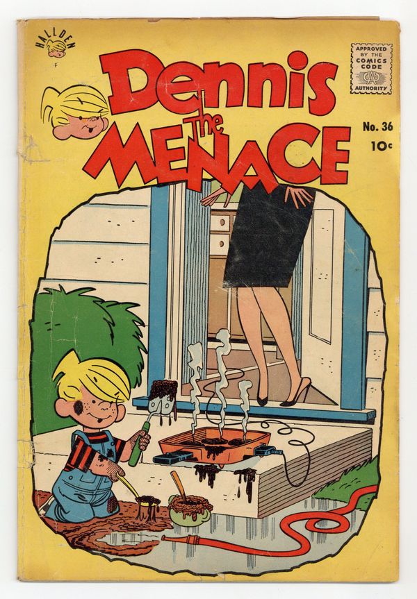 Cover art by Al Wiseman. Reprints of daily Dennis the Menace cartoons by Hank Ketcham. Dennis vs Dirt, script by Fred Toole, art by Al Wiseman; Joey plays baseball with some big kids. The Wrong Slant, script by Fred Toole, art by Al Wiseman. Reversed Opinion text story. The Last Straw (Straw Hat, That Is), script by Fred Toole, art by Al Wiseman. 36 pgs. $0.10. Cover price $0.10.