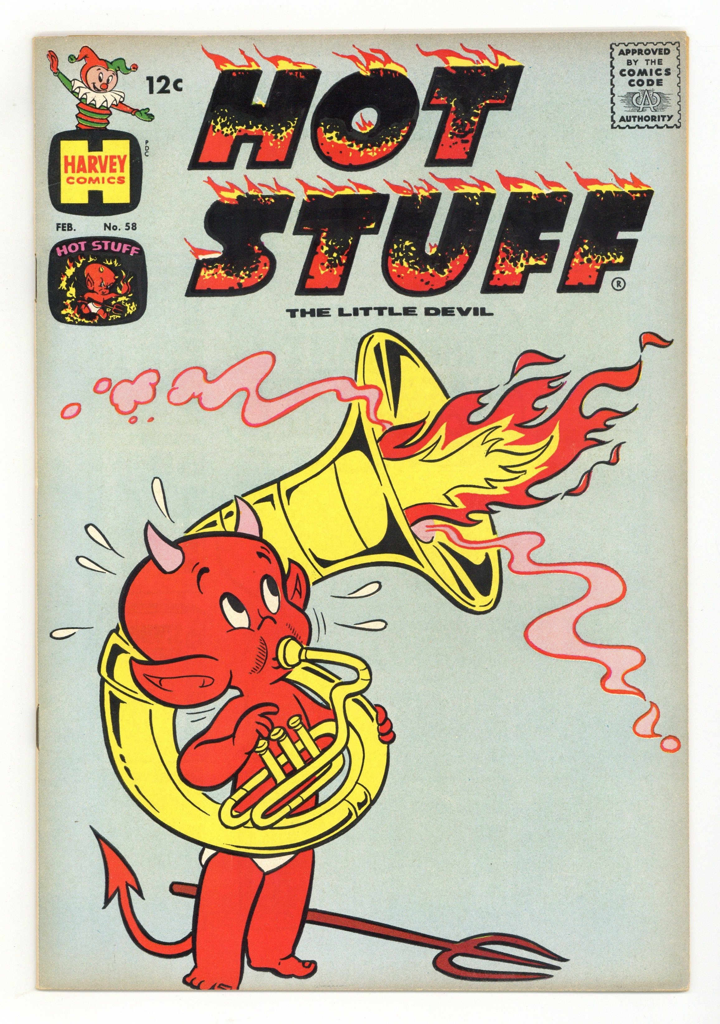 Cover by Warren Kremer. Harvey's mischievous little devil is not as famous as their friendly ghost, but his design became a permanent part of pop culture. In a three-part story, Hot Stuff plays detective and investigates after Santa Claus disappears. The result is the strangest team-up since Santa tackled the Martians. Sherlock Hot Stuff; What Happened to Santa?; Its Elementary; Stumbo: Cute but Colossal. 32 pages, Full Color. Cover price $0.12.