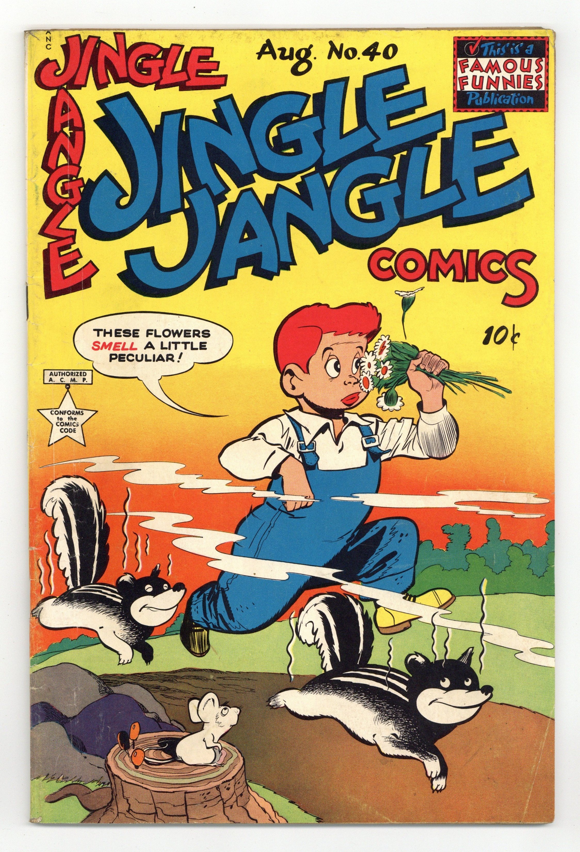 Stories and art by George Carlson, David Tendlar, and Nate Collier. Kids' comics featuring the whimsical fables of beloved artist George Carlson, praised by Harlan Ellison as a "comic of the absurd." Second-Story Sam (who drives a truck that advertises his burglary services) steals the Royal Carpet-Sweeper, while King Hokum notices the Million-Dollar Bill is missing again. Aunty Spry takes the kids on a nature walk. A crooked cabbie plots to kidnap the Zheckered Zultan's whole family, but he's foiled by the youngest Zulteen and Clancy the Royal Cop. Bingo and Glum in Fairytale Land; Chauncey Chirp and Johnny Jay; Jingle Jangle Tales: The Zheckered Zultan and His Three Little Zulteens; Pudgy; Polly-Anna; Ahunting We Will Go; Nickie; Hortense the Lovable Brat; Aunty Spry; The Pie-Face Prince of Old Pretzleburg; The Old Swap Shop. 48 pages, Full Color. Cover price $0.10.