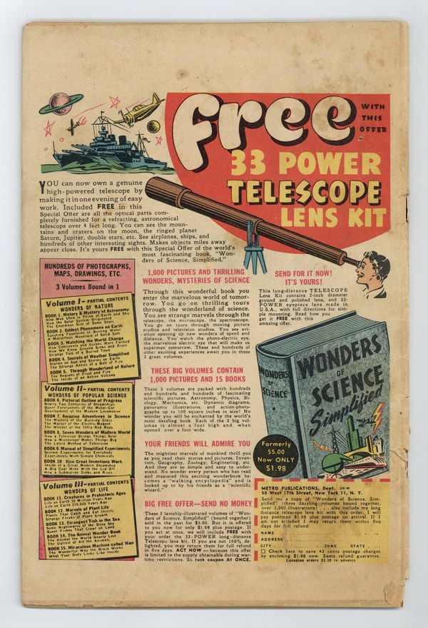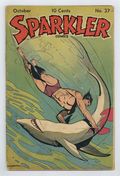 Cover by Burne Hogarth. Stories and art by Burne Hogarth, Paul Berdanier, Fred Methot, Bernard Dibble, Ernie Bushmiller, Jack Sparling, Drew Pearson, Bob Allen, Milburn Rosser, Rudolph Dirks, Charlie Plumb, Bill Conselman, Harry O'Neill, Raeburn Van Buren and Abner Dean. United's anthology featured reprints of early comic strips, plus patriotic WWII heroes The Spark Man and Race Riley. The Spark Man struggles to escape after being sealed up behind the wall in gangster Martoni's house. Heartbroken Hap Hopper and Holly pass each other in the Washington train station without even realizing it. Bathless Groggins is masquerading as Princess Groggynska while the real princess organizes the Resistance, but that puts Bathless in the hot seat. Plus a Tarzan adventure by Burne Hogarth. Aquatic Tarzan cover by Hogarth. Spark Man; Hap Hopper; Nancy; Captain and the Kids; Ella Cinders; Tarzan; Abbie an Slats; Broncho Bill; Race Riley and the Commandos; Sparkler Salutes; El Bombo. 48 pages, Full Color. Cover price $0.10.