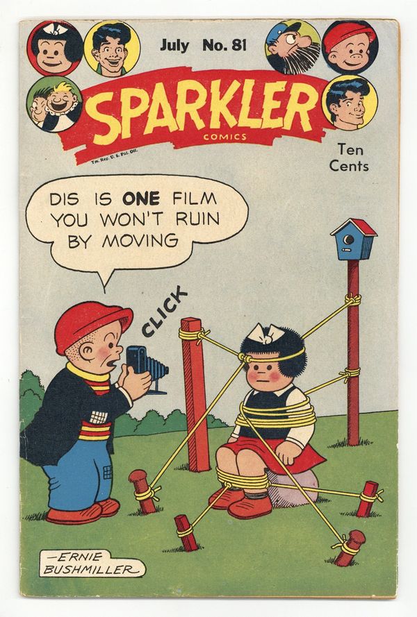 Cover by Ernie Bushmiller. Stories and art by Burne Hogarth, Al Capp, Ernie Bushmiller, Jack Sparling, Charlie Plumb, Bernard Dibble, Ed Dodd, Rudolph Dirks, J. P. Williams, Arnie Mossler and Raeburn Van Buren. United's anthology featured reprints of early comic strips, including Tarzan, Li'l Abner and Nancy. The Captain and the Kids' prospecting adventure continues from the previous issue, as they search for gold in the Klondike. But the Kids' alteration of a wanted poster leads to the Captain being mistaken for outlaw Bloody Bill. Sue Groggins makes a play for Slats while Becky is away, in an Abbie an' Slats strip with fine art by Raeburn van Buren. Plus a Li'l Abner storyline by Al Capp and a Tarzan strip with art by Burne Hogarth. Li'l Abner; Hap Hopper; Nancy; Sluggo; Captain and the Kids; Sparkler's Stars of the Air; Tarzan; Dink O'Day; Abbie an Slats. 48 pages, Full Color. Cover price $0.10.