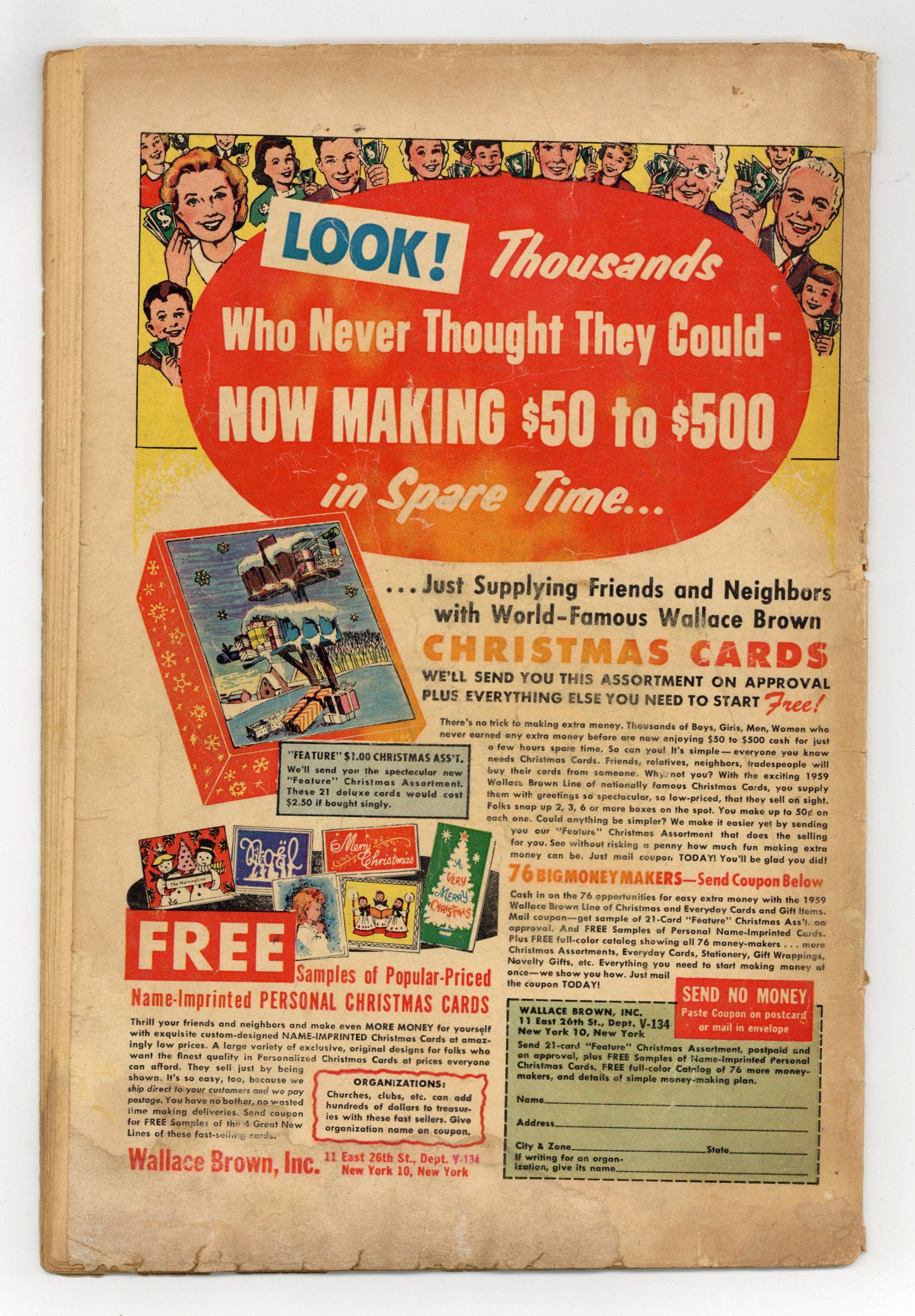 - 1.5" Spine split from bottom. Centerfold detached.