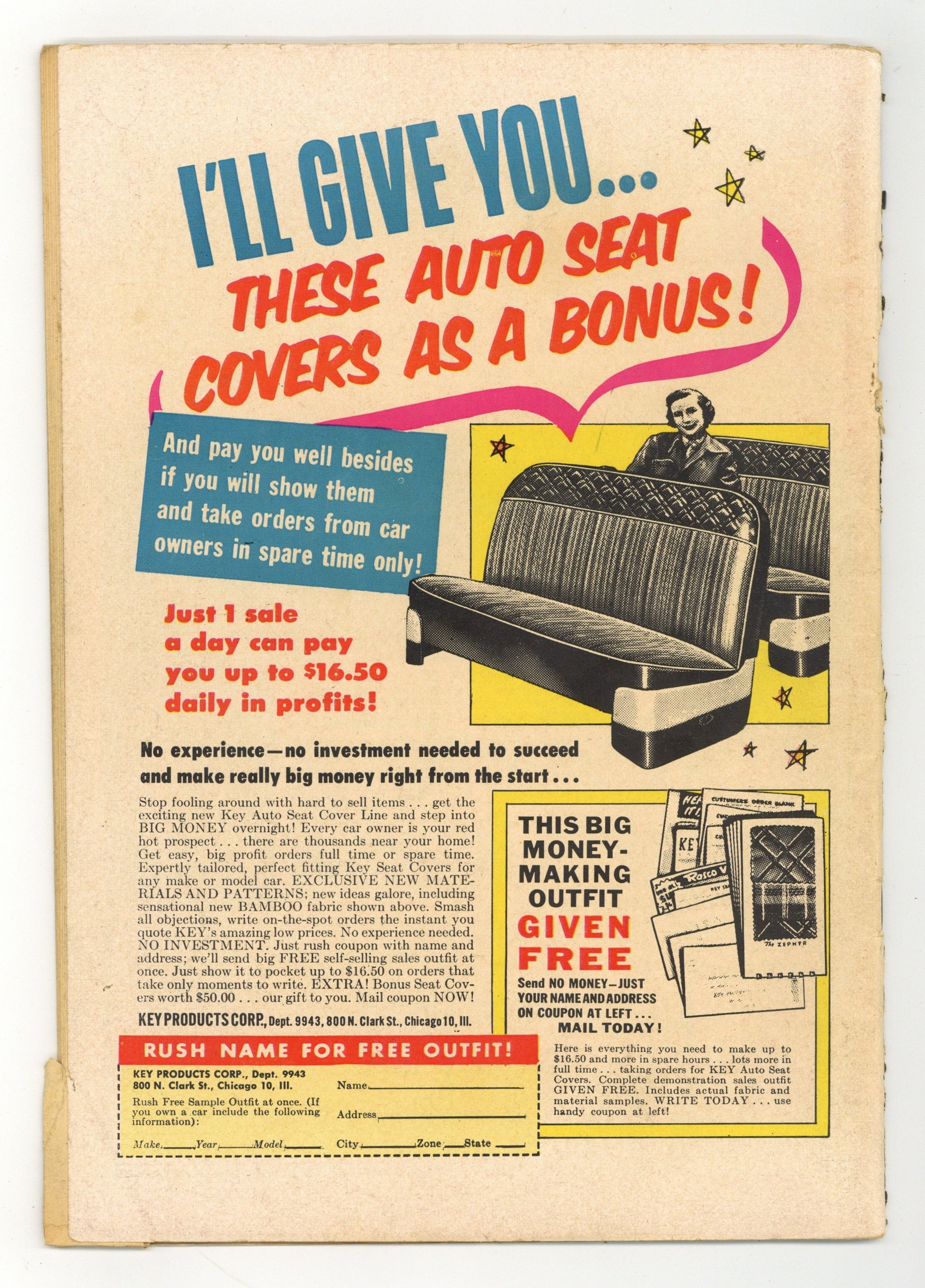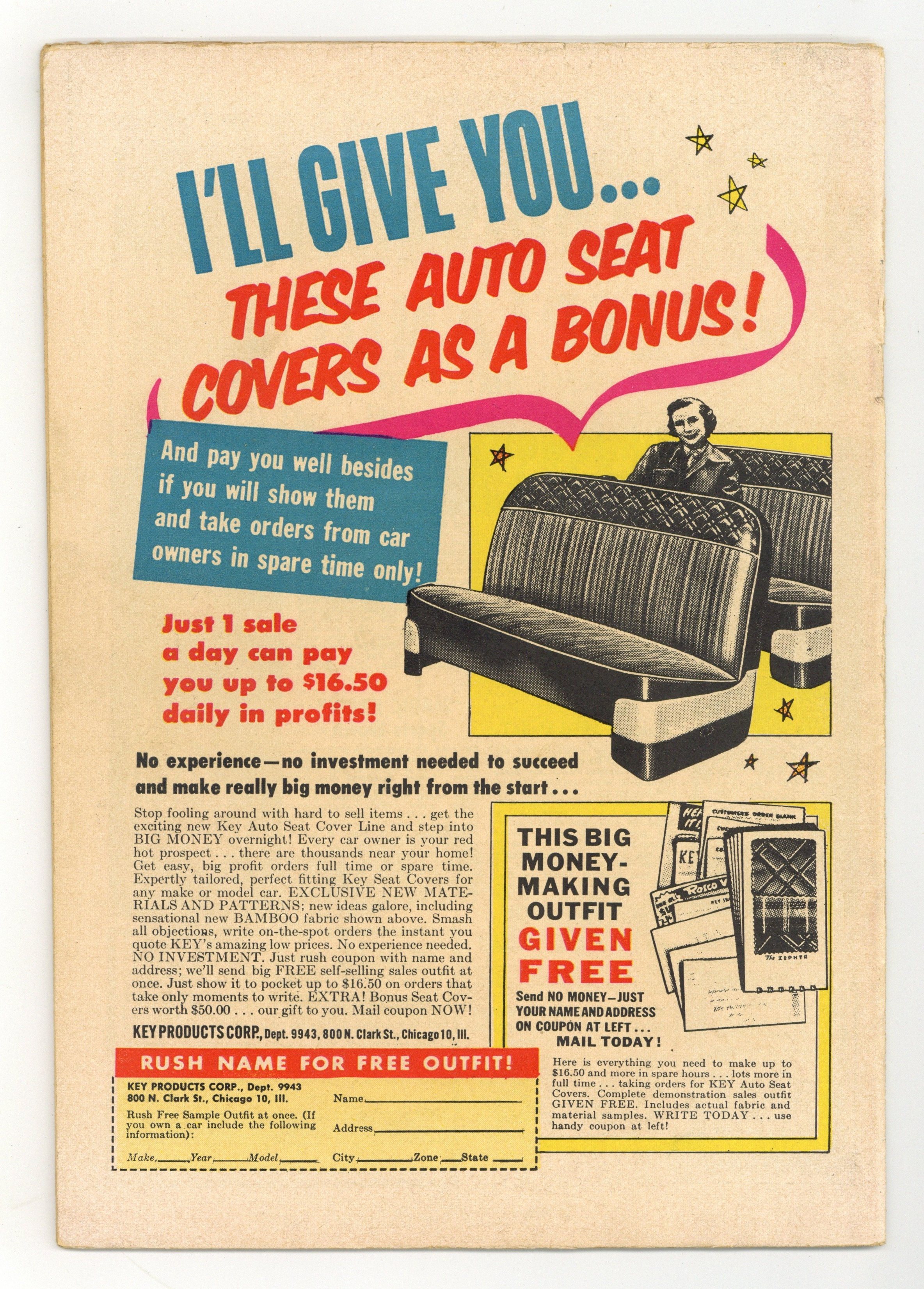 $65.00Cover by John Severin. Stories by Colin Dawkins. Art by John Severin. Harvey Kurtzman's legendary series enlisted top EC artists for gritty tales of war and adventure. Soldier of fortune Ruby Ed Coffey follows a stolen statue to a lost city and a hidden uranium lode. A Harvard-educated Cheyenne chieftain's son returns to challenge Flaming Arrow, who killed his father and wants to lead his people to war. The new ranch hand seems like a coward to the other cowboys, until they encounter a band of rustlers. Lost City!; Warpath!; Two-Fisted Men: Captain Sir Richard Francis Burton; Bullets!; Stampede! 36 pages, Full Color. Cover price $0.10.