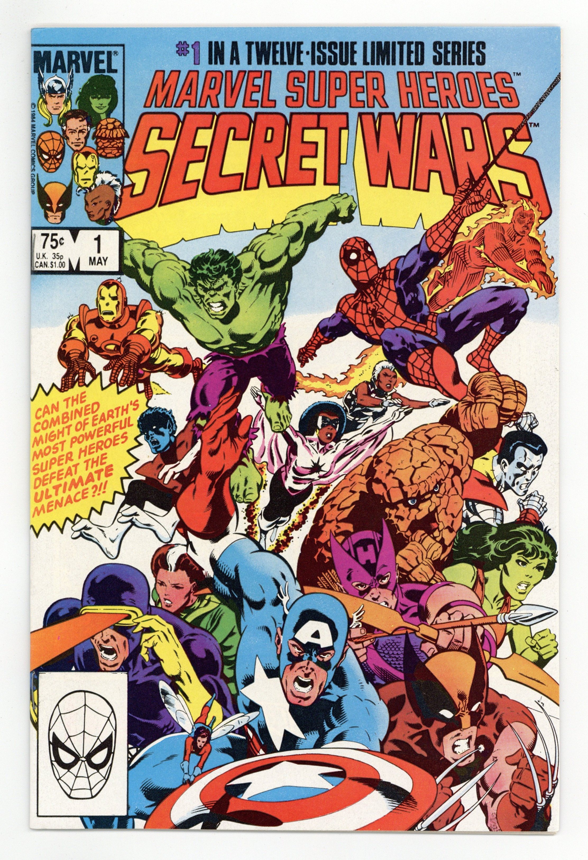 Ends Dec 15 8:58 PM CST Bid History 9 bids Current Bid $71 Your Secret Max Bid If you'd like to bid, please log in or register. Direct Edition. "The War Begins!" Part 1 of 12. Story by Jim Shooter. Art by Mike Zeck and John Beatty. This is it, the granddaddy of all epic events. Before Identity Crisis, Infinite Crisis, House of M, Civil War, and Infinity Gauntlet there was Secret Wars. A nigh omnipotent being from beyond has, for lack of a better word, kidnapped the greatest heroes and deadliest villains in the Marvel Universe and whisked them to the far side of the universe to battle for the ultimate prize. One thing is for certain, the lives of these heroes and villains will never be the same again. - This is the first printing. Any 2nd printing will have the words "Second Printing" at the bottom of the first page. NOTE: Nearly all first printings contain a "Blue Galactus" from a printing error (a lack of magenta printing plates) that was corrected in later printings. While small number of First printings may have the correct colors, the majority of copies will have "Blue Galactus". Due to the frequency, "Blue Galactus" variants should be treated the same as other First Printings. 36 pages, full color. Cover price $0.75.