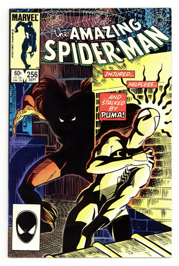 Tags: Marvel Legacy Numbering: Amazing Spider-Man (part 256), Spider-Man$22.50Direct Edition. "Introducing...Puma!" Part 1 of 2. First appearance of Puma. Script by Tom DeFalco. Pencils by Ron Frenz. Inks by Joe Rubinstein. Cover by Ron Frenz and Joe Rubinstein. The Rose is tired of the web-slinger interfering in his criminal activities! So, the underworld boss brings in an assassin from the American Southwest! Puma! Spidey doesn't much about Puma (aka Thomas Fireheart), but he will...very soon! In the meantime, the black symbiote costume keeps Peter Parker up past his bedtime...and then some! Cameo appearances by the Black Cat, Mary Jane Watson, Betty Brant Leeds, and Joe Robertson. (Note: This two-part story was reprinted in Marvel Tales 270 & 271.) 36 pgs. Cover price $0.60.